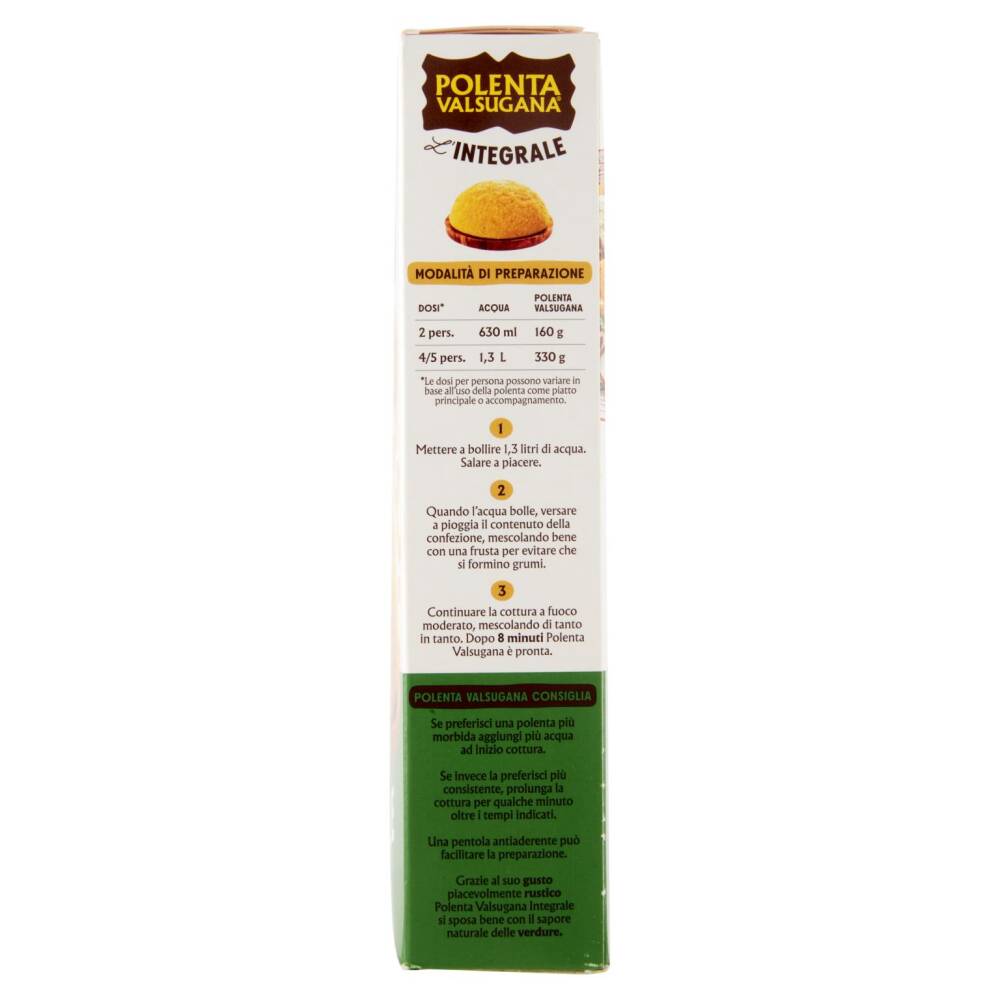 Polenta Valsugana Integrale è fatta solo con farina di mais integrale.