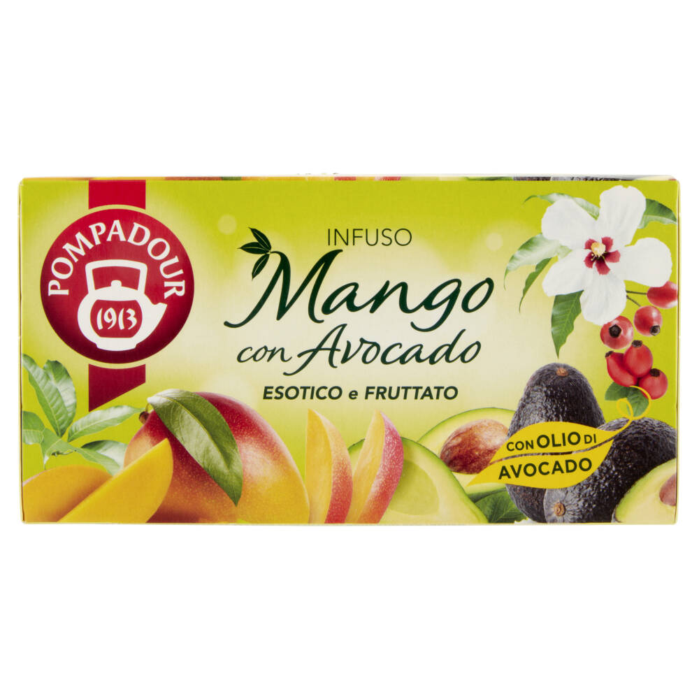 Una squisita composizione di frutta con il gusto dolce e profumato del mango, maturato sotto il sole dei tropici, impreziosita dall'olio di avocado, un frutto esotico, originario del Sudamerica, che in Italia conosce sempre più estimatori. Questo infuso, naturalmente privo di caffeina, è ideale per chi desidera concedersi una pausa gustosa e rigenerante.