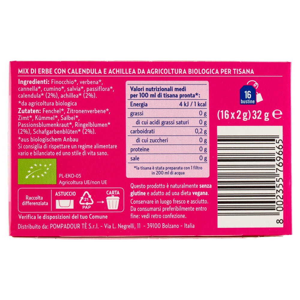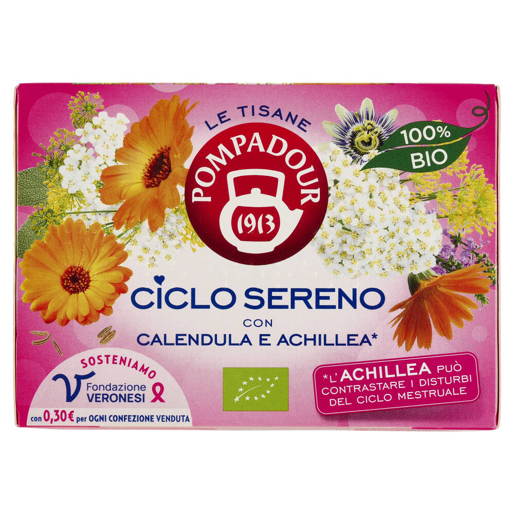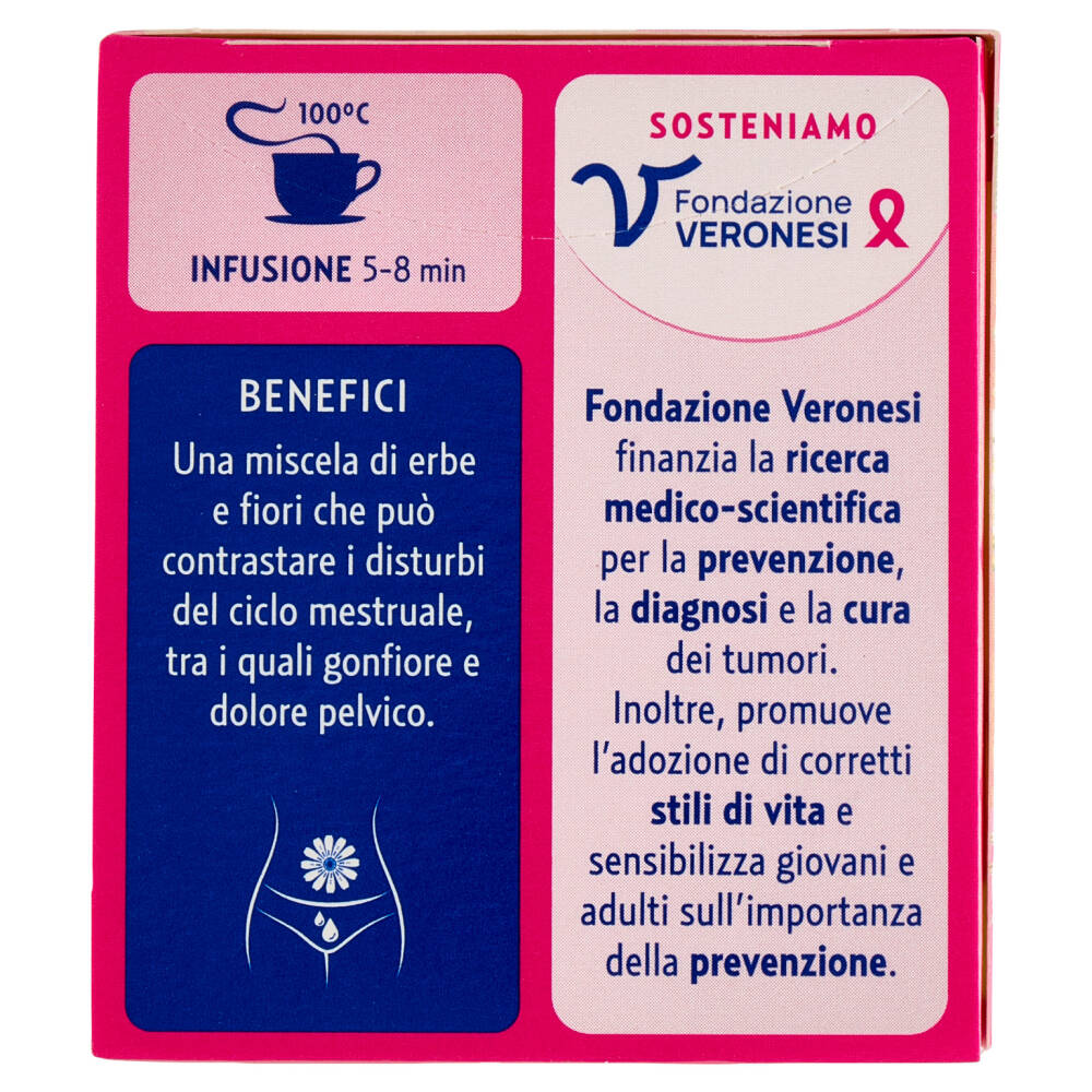 Una miscela di erbe e fiori che può contrastare i disturbi del ciclo mestruale, tra i quali gonfiore e dolore pelvico.