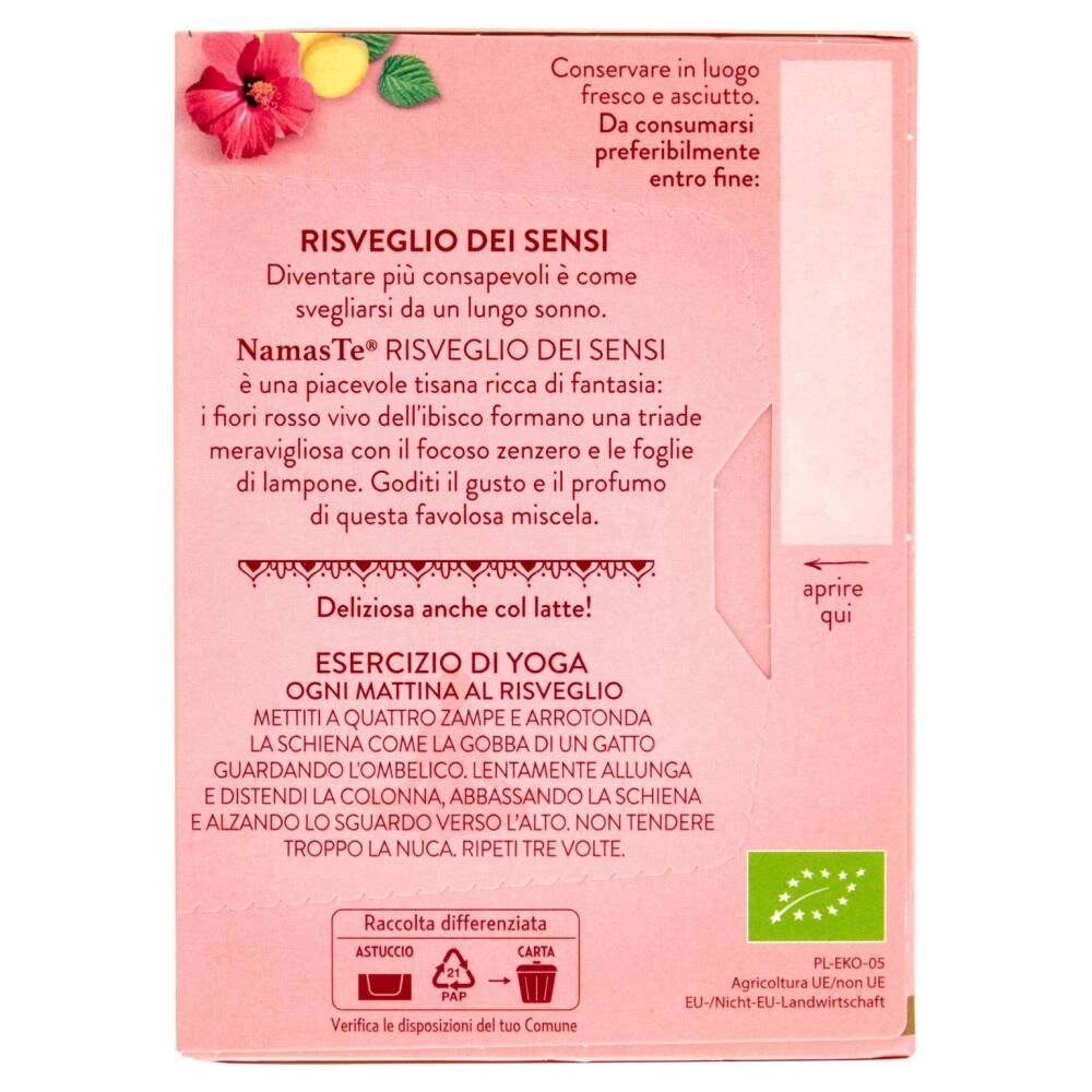 NamasTe Risveglio dei Sensi è una piacevole tisana ricca di fantasia: i fiori rosso vivo dell'ibisco formano una triade meravigliosa con il focoso zenzero e le foglie di lampone. Goditi il gusto e il profumo di questa favolosa miscela.