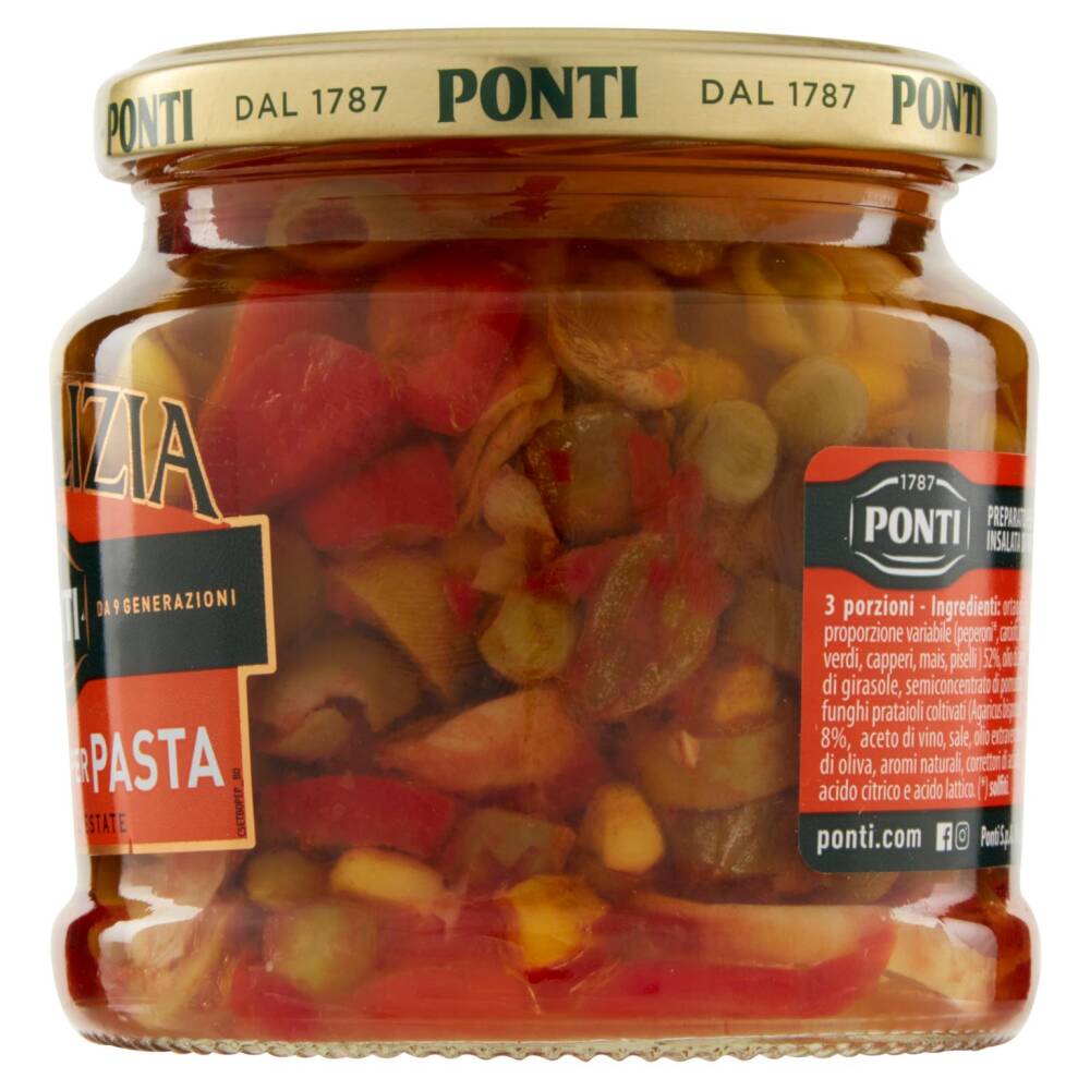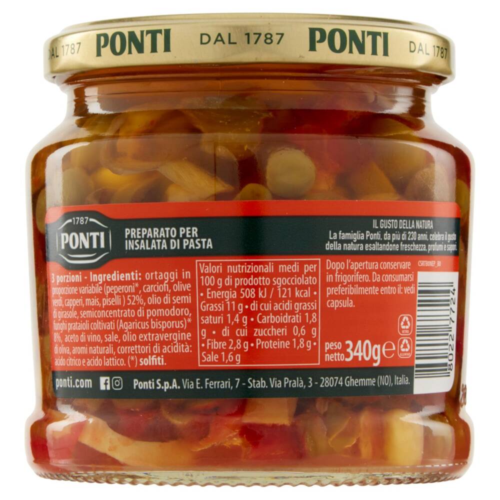 Ortaggi in proporzione variabile (peperoni*, carciofi, olive verdi, capperi, mais, piselli) 52% Olio di semi di girasole Semiconcentrato di pomodoro Funghi prataioli coltivati (Agaricus bisporus)* 8% Aceto di vino Sale Olio extravergine di oliva Aromi naturali Correttori di acidità: acido citrico e acido lattico (*) solfiti