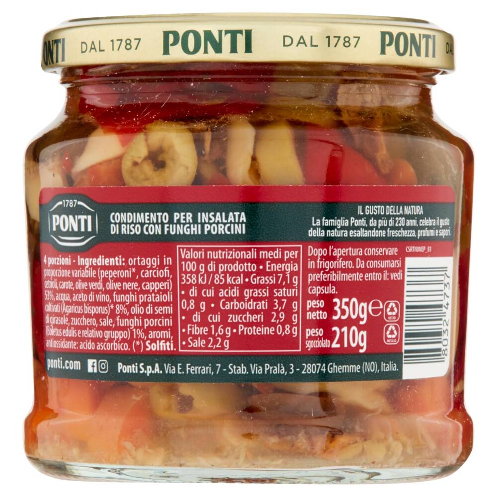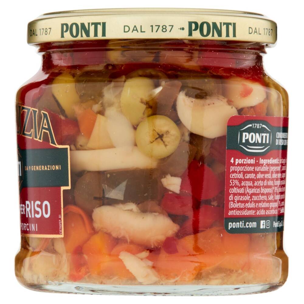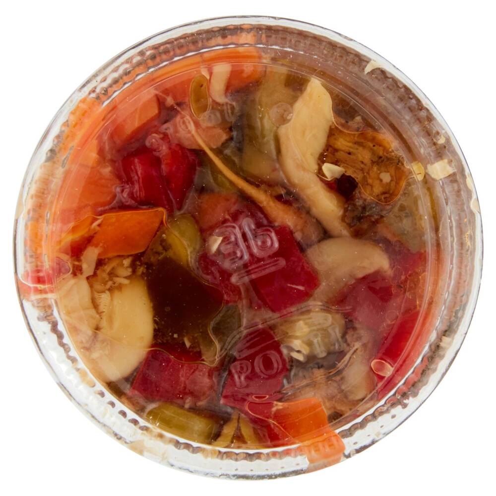Ortaggi in proporzione variabile (peperoni, carciofi, cetrioli, carote, olive verdi, olive nere, capperi) 53% Acqua Aceto di vino Funghi prataioli coltivati (Agaricus bisporus) 8% Olio di semi di girasole Zucchero Sale Funghi porcini (Boletus edulis e relativo gruppo) 1% Aromi Antiossidanti acido ascorbico e anidride solforosa