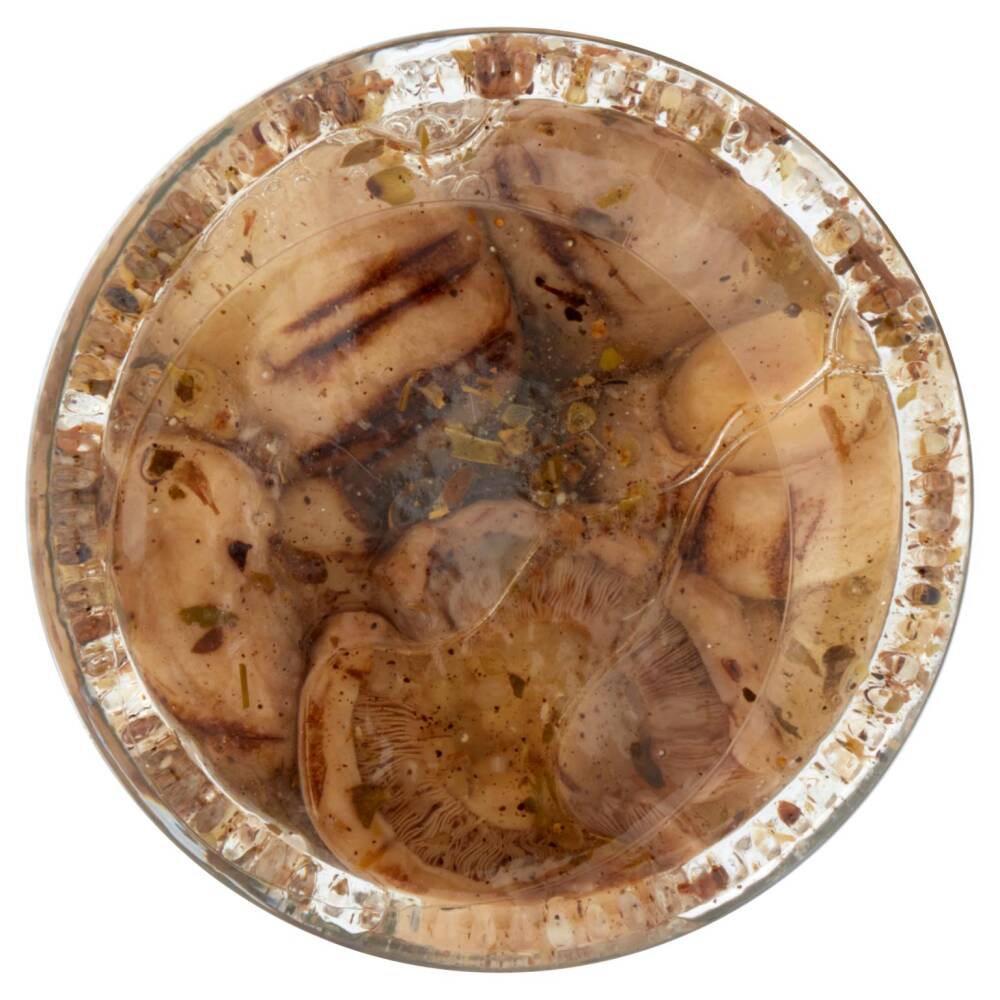 Funghi prataioli coltivati (Agaricus bisporus) grigliati Salsa (maltodestrine di mais, aceto di vino, zucchero, sale, cipolla, miscela di spezie, aromi naturali, aroma, addensanti: gomma xantano e pectina)