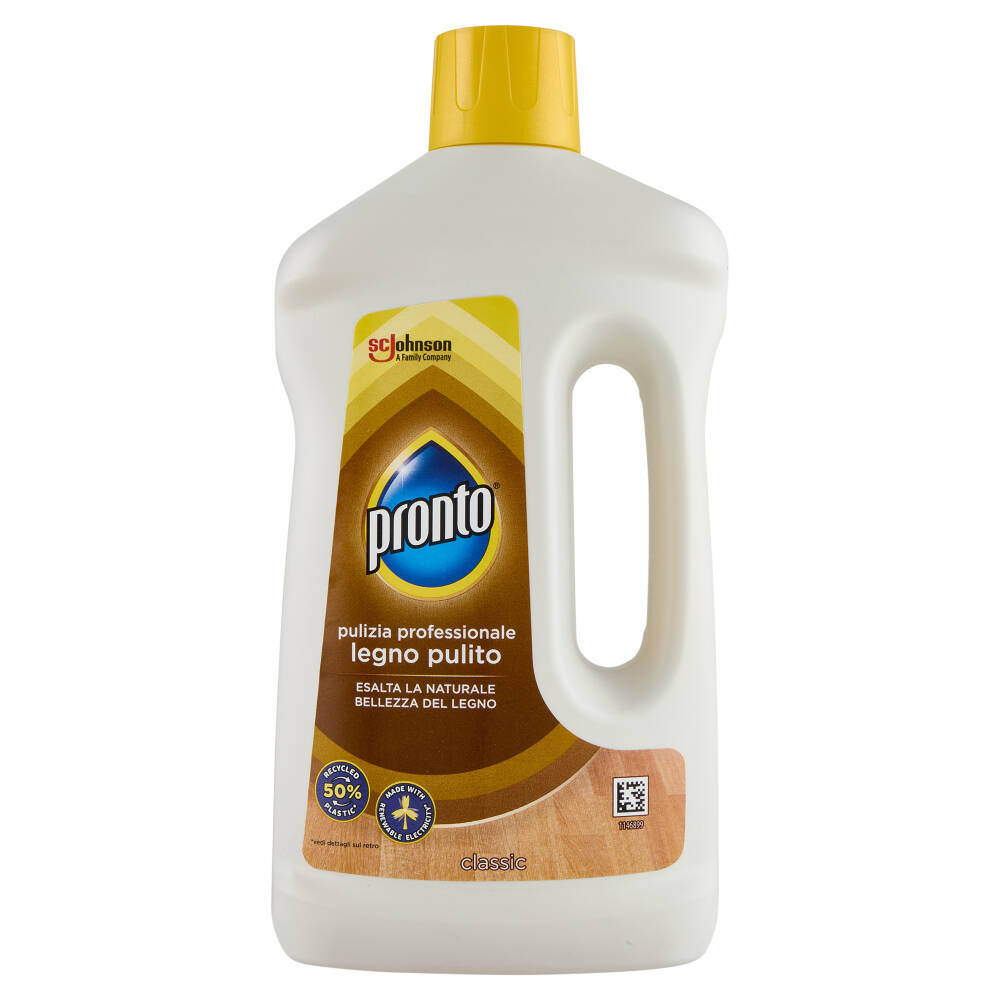 Pronto Legno Pulito Classic è una formula delicata che rimuove facilmente lo sporco dai pavimenti senza lasciare aloni e residui.