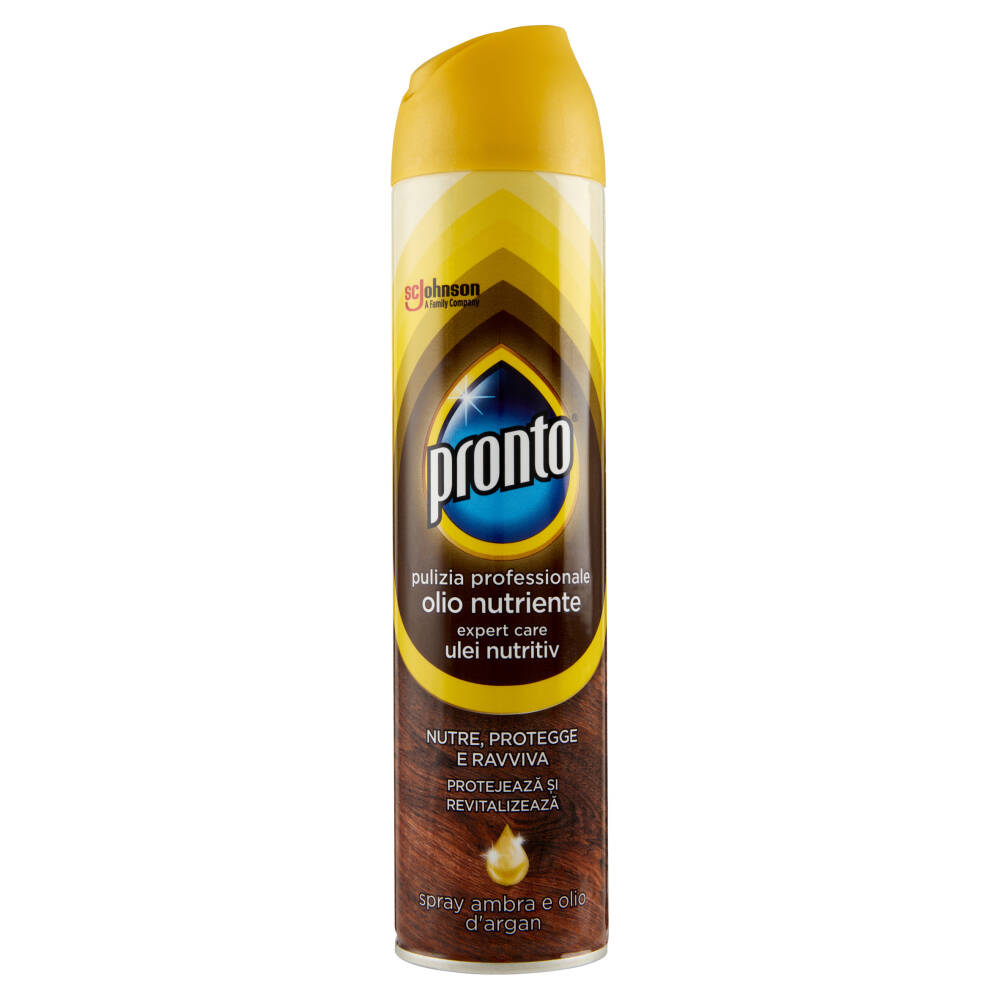 Pronto Spray Olio Nutriente Ambra e Olio d'Argan è una formula che nutre, protegge e ravviva il legno, donandogli una lucentezza che dura a lungo e che lo rende come nuovo. Prodotto con oli minerali e senza siliconi.