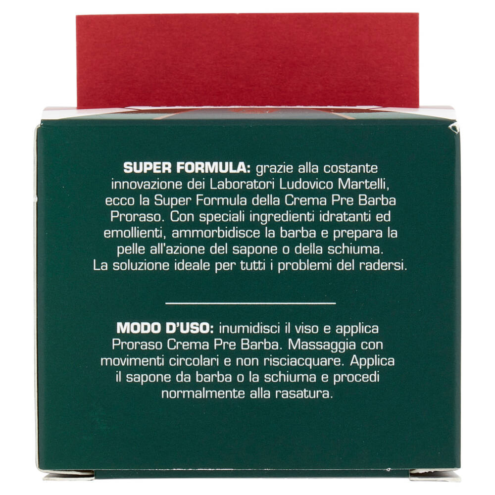 Super Formula: grazie alla costante innovazione dei Laboratori Ludovico Martelli, ecco la Super Formula della Crema Pre Barba Proraso. Con speciali ingredienti idratanti ed emollienti, ammorbidisce la barba e prepara la pelle all'azione del sapone o della schiuma. La soluzione ideale per tutti i problemi del radersi.