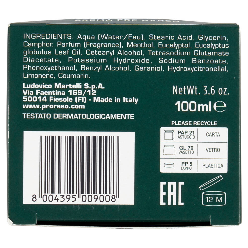 Modo d'uso: inumidisci il viso e applica Proraso Crema Pre Barba. Massaggia con movimenti circolari e non risciacquare. Applica il sapone da barba o la schiuma e procedi normalmente alla rasatura.