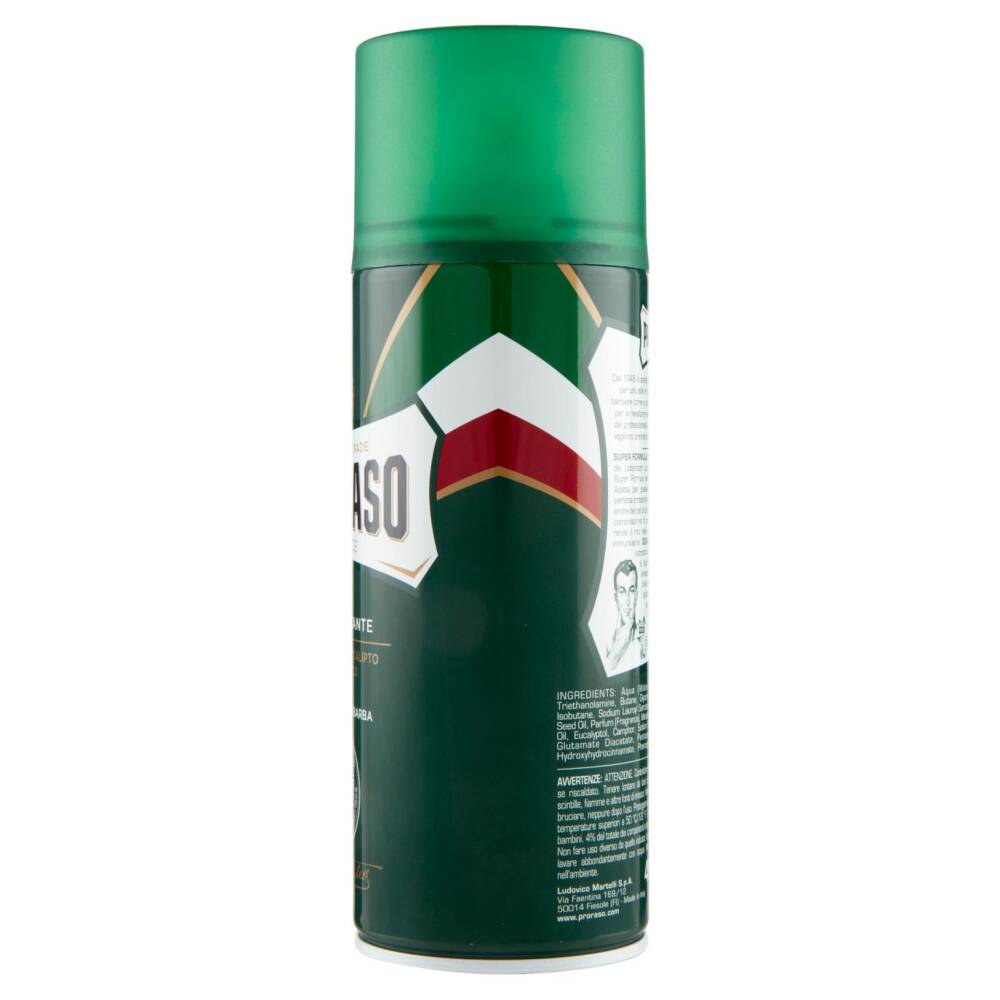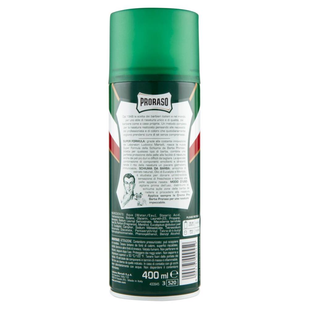 Super Formula: grazie alla costante innovazione dei Laboratori Ludovico Martelli, nasce la nuova Super Formula della Schiuma da Barba Proraso. Adatta per qualsiasi tipo di barba, combina una perfetta protezione della pelle alla facilità di rasatura anche dei peli più duri e difficili da tagliare. La speciale combinazione di componenti emollienti e idratanti rende il rito della rasatura un piacere giornaliero irrinunciabile. Schiuma da Barba: arricchita di estratti naturali, Olio di Eucalipto e Mentolo, è studiata per donare un'incredibile sensazione di freschezza e tonicità alla pelle appena rasata.