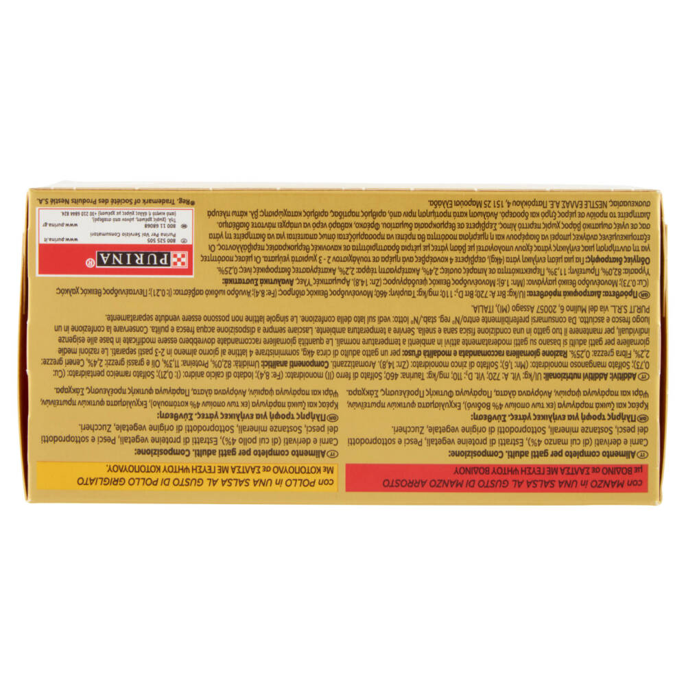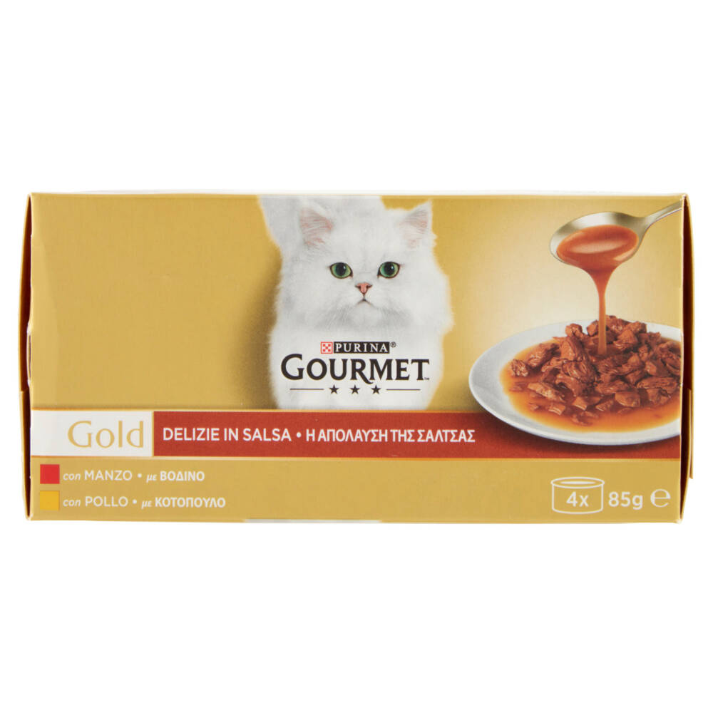 Se la scelta dipendesse dal tuo gatto, ad ogni pasto ti chiederebbe una sola cosa: salsa, salsa e ancora salsa. Ecco perchè GOURMET Gold ha creato Delizie in Salsa. Ogni ricetta di Gold Delizie in Salsa nasce con una generosa dose di squisita e saporita salsa, delicatamente servita con finissimi e teneri filettini con pollo, manzo o pesce. Puoi offrire con gioia ogni giorno GOURMET Gold Delizie in Salsa al tuo gatto, poichè ogni ricetta è stata preparata appositamente per deliziarlo. Tutte le ricette GOURMET Gold non contengono coloranti, conservanti e aromi artificiali aggiunti. Nuovo GOURMET Gold Delizie in Salsa: una creazione squisita dedicata al piacere del tuo gatto che non sa resistere alla salsa.