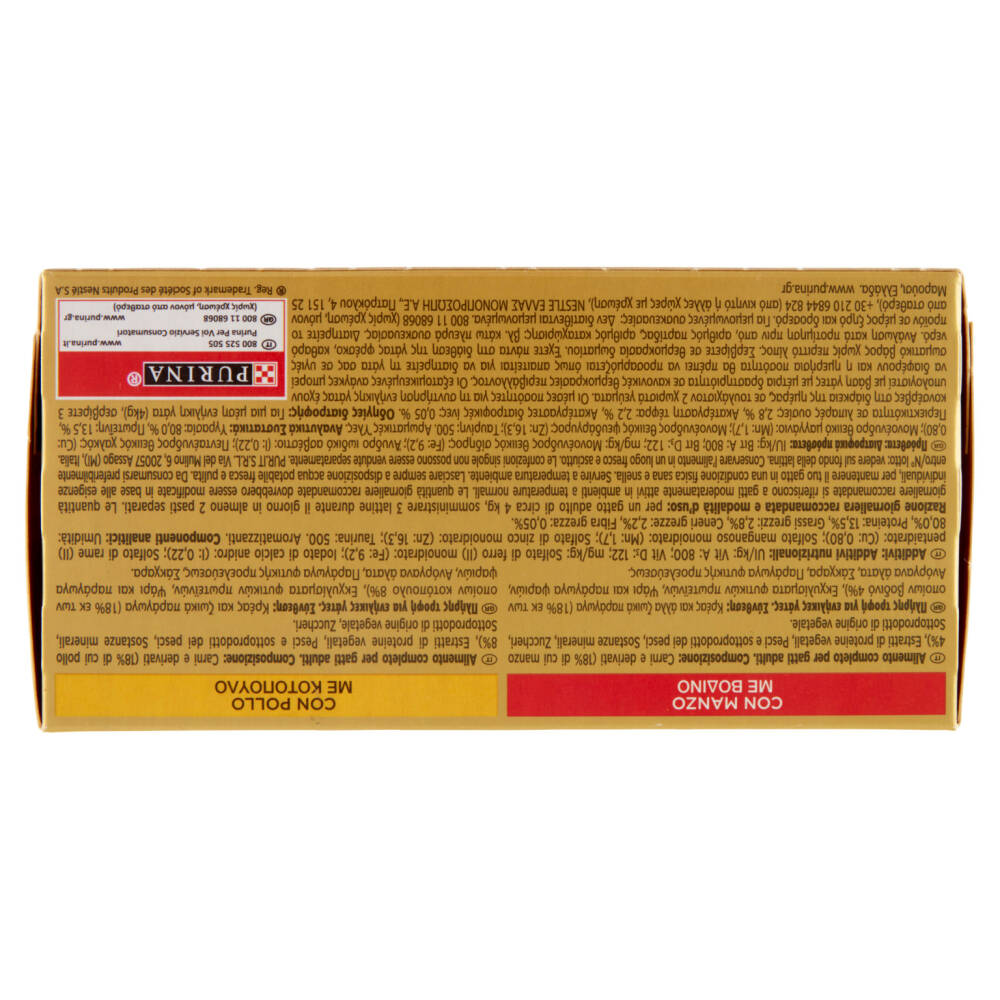 Razione giornaliera raccomandata e modalità d'uso: per un gatto adulto di circa 4 kg, somministrare 3 lattine durante il giorno in almeno 2 pasti separati. Le quantità giornaliere raccomandate si riferiscono a gatti moderatamente attivi in ambienti a temperature normali. Le quantità giornaliere raccomandate dovrebbero essere modificate in base alle esigenze individuali, per mantenere il tuo gatto in una condizione fisica sana e snella. Servire a temperatura ambiente. Lasciare sempre a disposizione acqua potabile fresca e pulita.