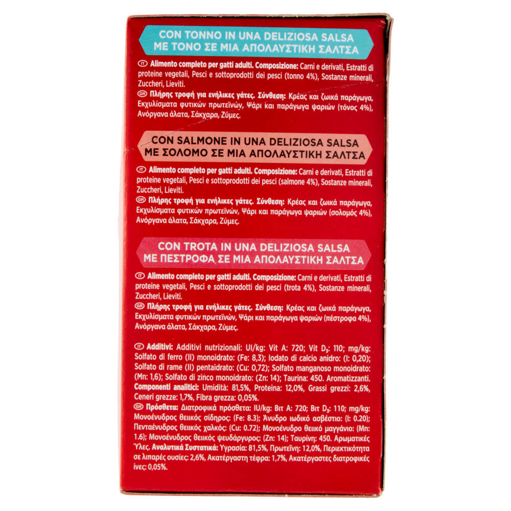Progettato per essere riciclabile 6x50g Nuova esperienza di gusto Raffinati filettini Con tonno Con salmone Con trota In una deliziosa salsa