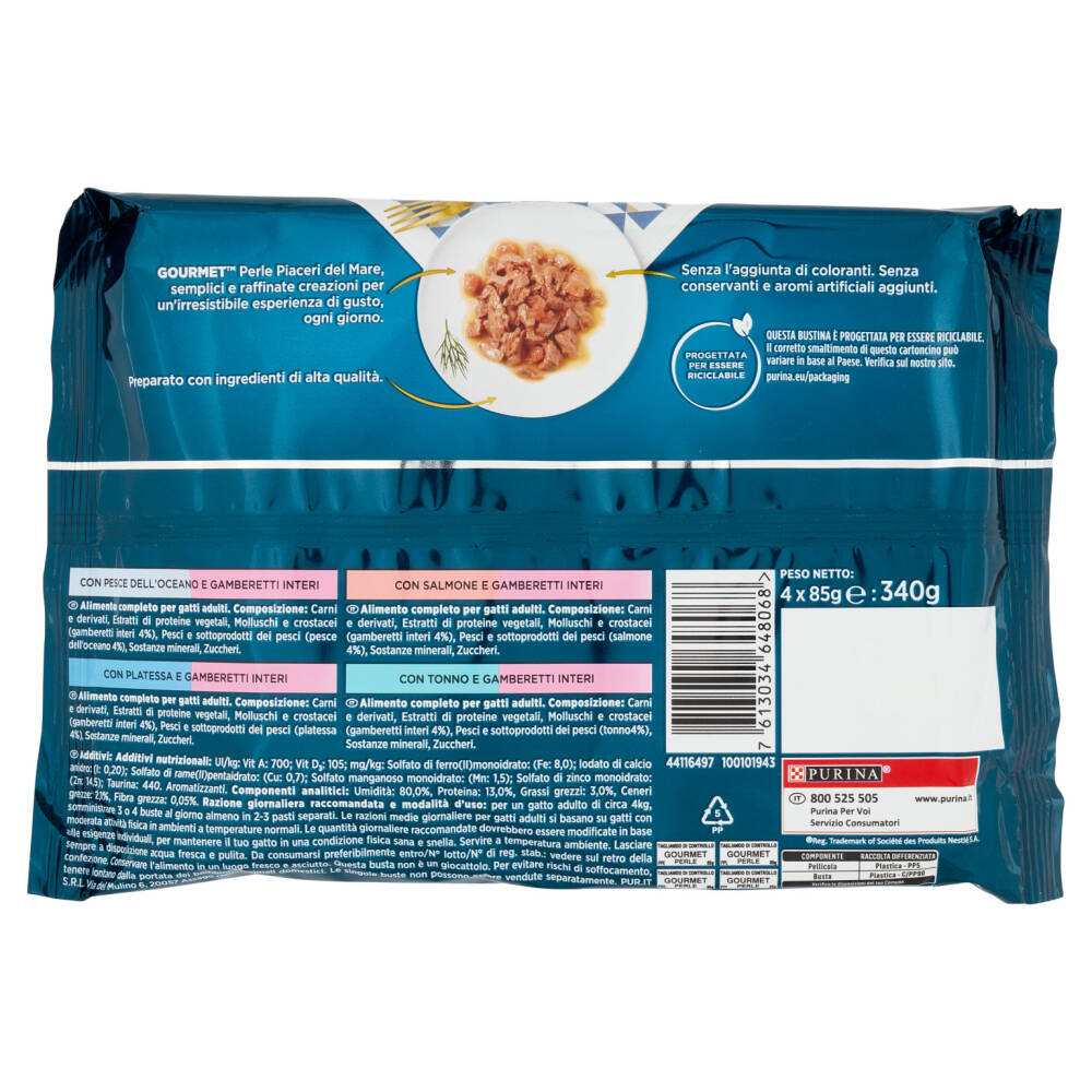 Varietà & Risparmio Con pesce dell'oceano e gamberetti interi Con salmone e gamberetti interi Con platessa e gamberetti interi Con tonno e gamberetti interi 4x Buste 85g ℮