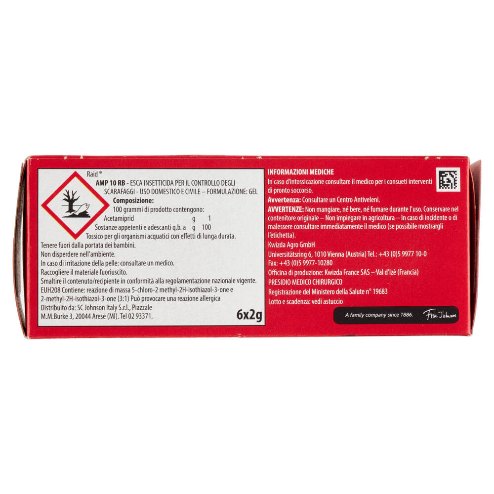 AMP 10 RB - Esca insetticida per il controllo degli scarafaggi - Uso domestico e civile - Formulazione: gel