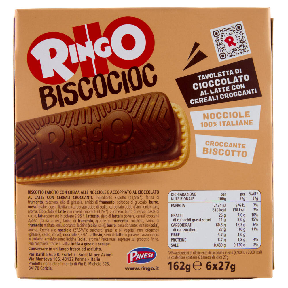 Biscotto (41,5%*): farina di frumento, zucchero, olio di girasole, amido di frumento, sciroppo di glucosio, burro, uova fresche, agenti lievitanti (carbonato acido di sodio, carbonato acido d'ammonio), sale, aroma