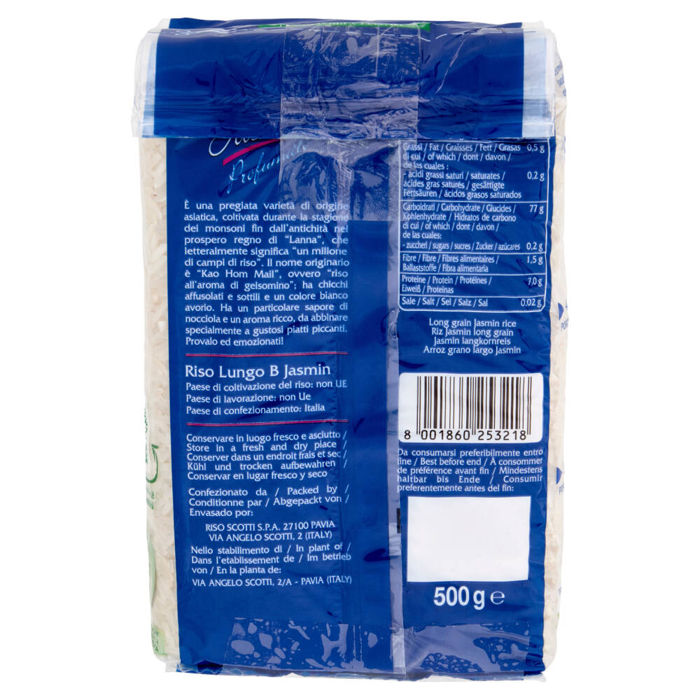 È una pregiata varietà di origine asiatica, coltivata durante la stagione dei monsoni fin dall'antichità nel prospero regno di "Lanna", che letteralmente significa "un milione di campi di riso". Il nome originario è "Kao Hom Mail", ovvero "riso all'aroma di gelsomino"; ha chicchi affusolati e sottili e un colore bianco avorio. Ha un particolare sapore di nocciola e un aroma ricco, da abbinare specialmente a gustosi piatti piccanti. Provalo ed emozionati!