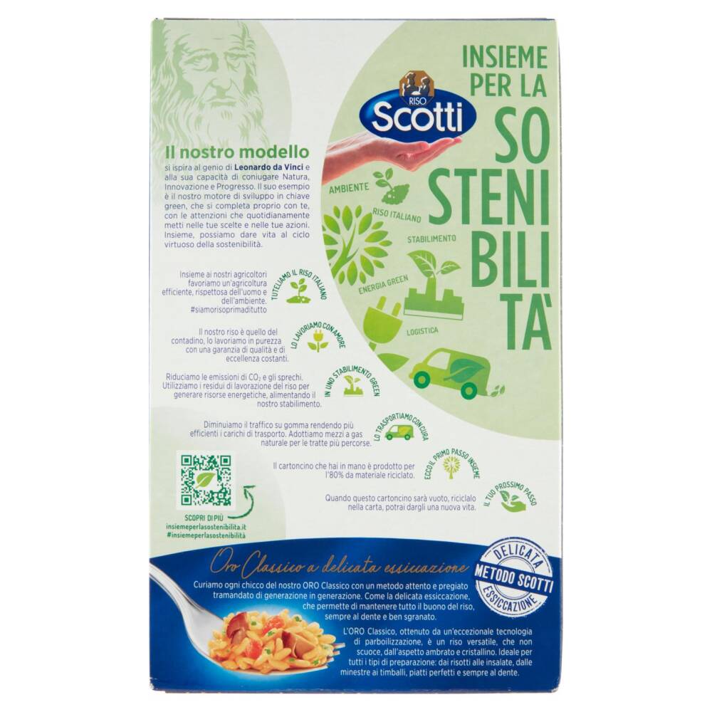 L'Oro Classico, ottenuto da un'eccezionale tecnologia di parboilizzazione, è un riso versatile, che non scuoce, dall'aspetto ambrato e cristallino. Ideale per tutti i tipi di preparazione: dai risotti alle insalate, dalle minestre ai timballi, piatti perfetti e sempre al dente.