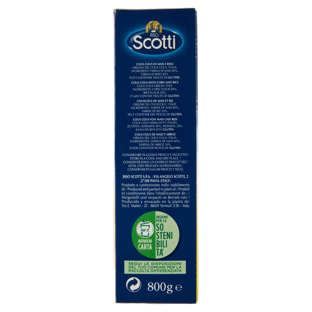 Il riso e il mais si incontrano in un sapiente blend e diventano cous cous dal gusto e profumo unici. Ideale come abbinamento a verdure, carne o pesce, è il tuo nuovo modo di portare in tavola ricette uniche e veloci da preparare.