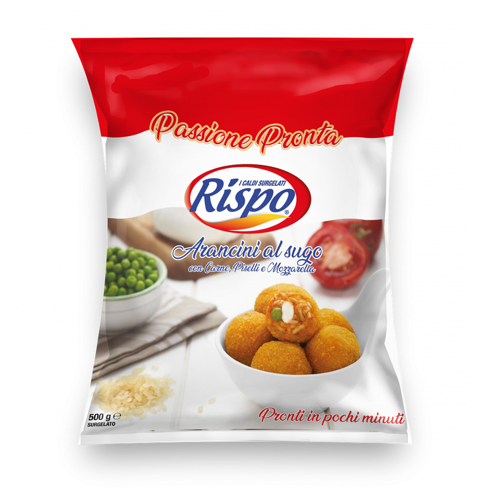 Riso, ragù di carne bovina, semilavorato per impanatura, pastella, mozzarella, provolone, Grana Padano D.O.P., piselli, formaggio pecorino.