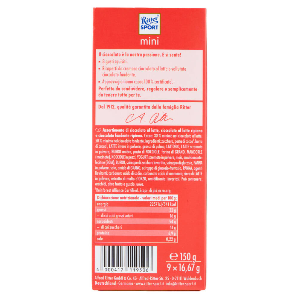 Zucchero Pasta di cacao¹ Burro di cacao¹ Latte intero in polvere Grasso di palma Lattosio Latte scremato in polvere Burro anidro Pasta di nocciole Farina di grano Mandorle (macinate) Nocciole in pezzi Yogurt scremato in polvere Mais Emulsionante: lecitine (soia) Burro Sciroppo di zucchero invertito Sciroppo di glucosio Panna in polvere Sale Amido di grano Sciroppo di glucosio-fruttosio Panna Agenti lievitanti: carbonato acido di sodio, carbonato acido di ammonio Siero di latte in polvere Estratto di malto d'orzo Umidificante: invertasi Può contenere: arachidi, altra frutta a guscio, uova ¹Rainforest Alliance Certified. Scopri di più su ra.org
