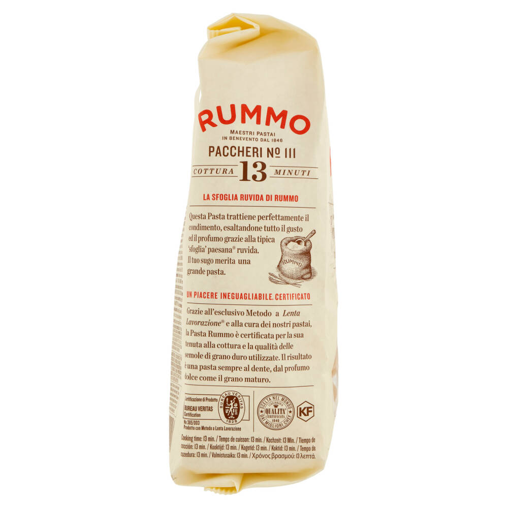 Grazie all'esclusivo Metodo a Lenta Lavorazione e alla cura dei nostri pastai, la Pasta Rummo è certificata per la sua tenuta alla cottura e la qualità delle semole di grano duro utilizzate. Il risultato è una pasta sempre al dente, dal profumo dolce come il grano maturo.