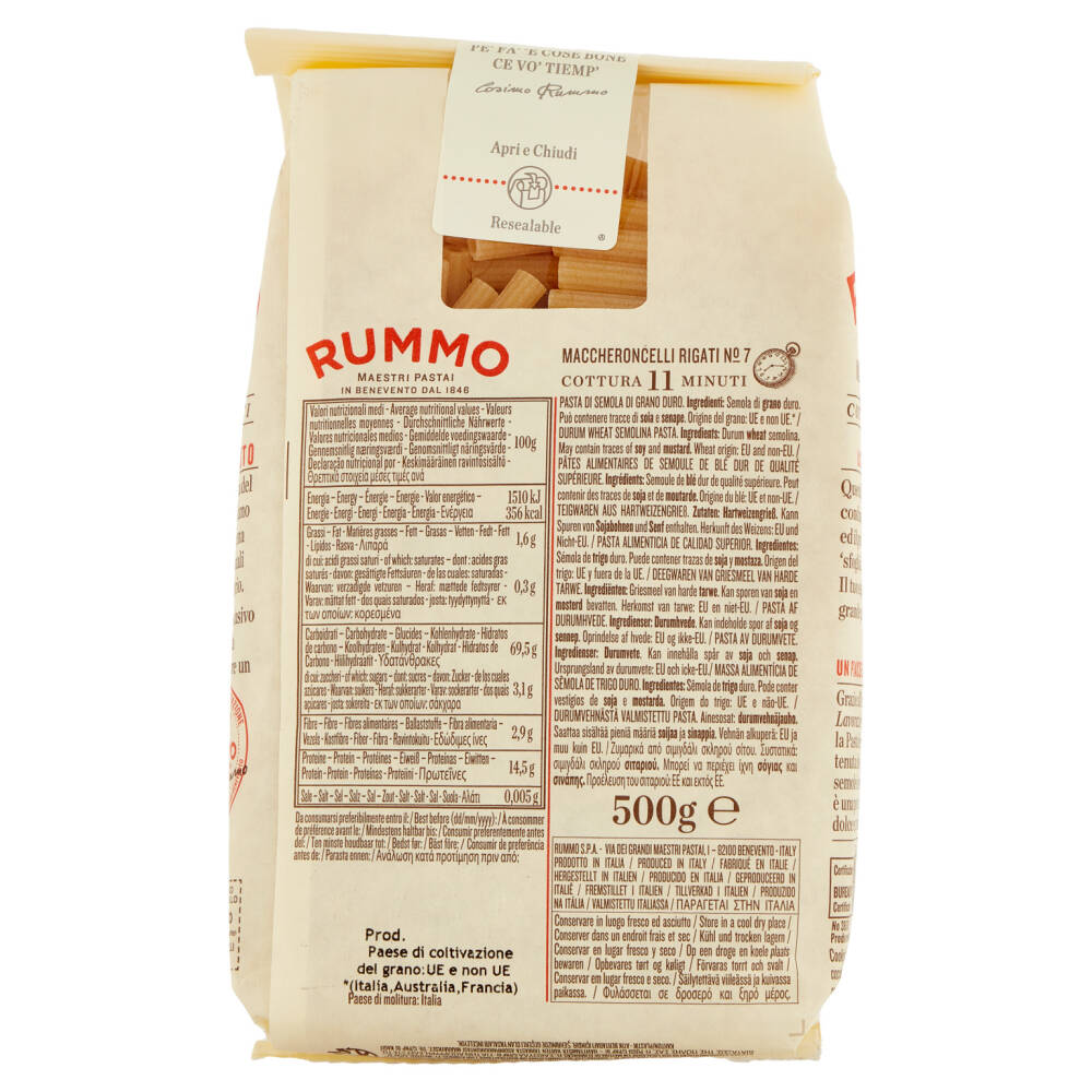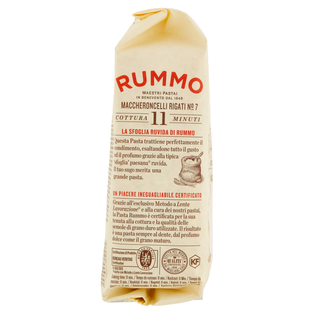 Grazie all'esclusivo Metodo a Lenta Lavorazione e alla cura dei nostri pastai, la Pasta Rummo è certificata per la sua tenuta alla cottura e la qualità delle semole di grano utilizzate. Il risultato è una pasta sempre al dente, dal profumo dolce come il grano maturo.