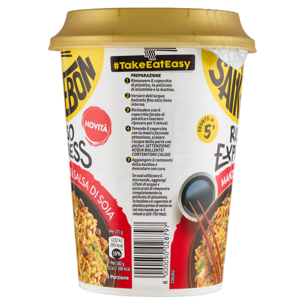 Condimento liquido 18% (salsa di soia 8,8% (acqua, semi di soia, frumento, sale), zucchero, olio di semi di girasole, colorante: caramello semplice, esaltatori di sapidità: E621, E635, sale, aceto di sidro di mele, aromi (contengono sedano), salsa di soia in polvere 0,5% (semi di soia, frumento, maltodestrina, sale), cipolla, carota, sedano, correttore di acidità: acido lattico; aglio), carota, cavolo, carne di manzo 0,7% (carne di manzo, sale), porro