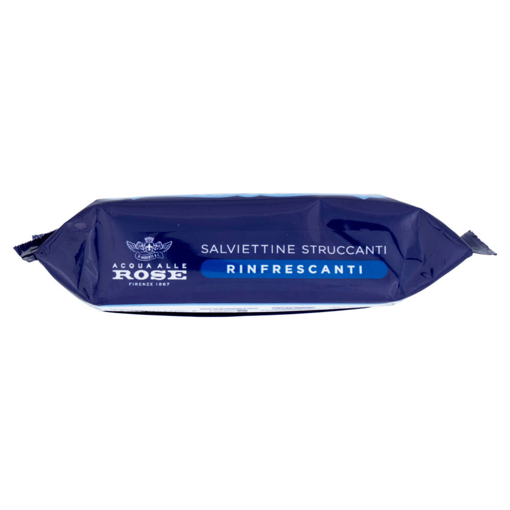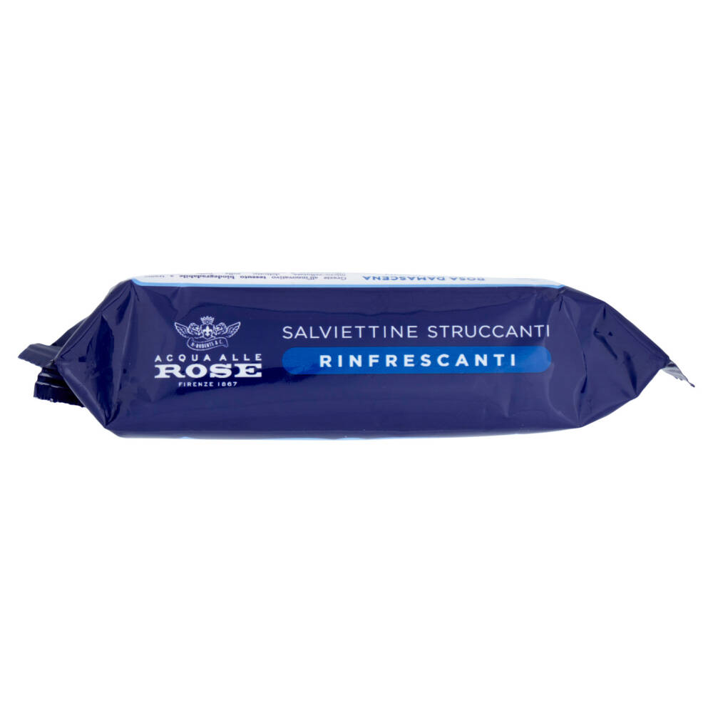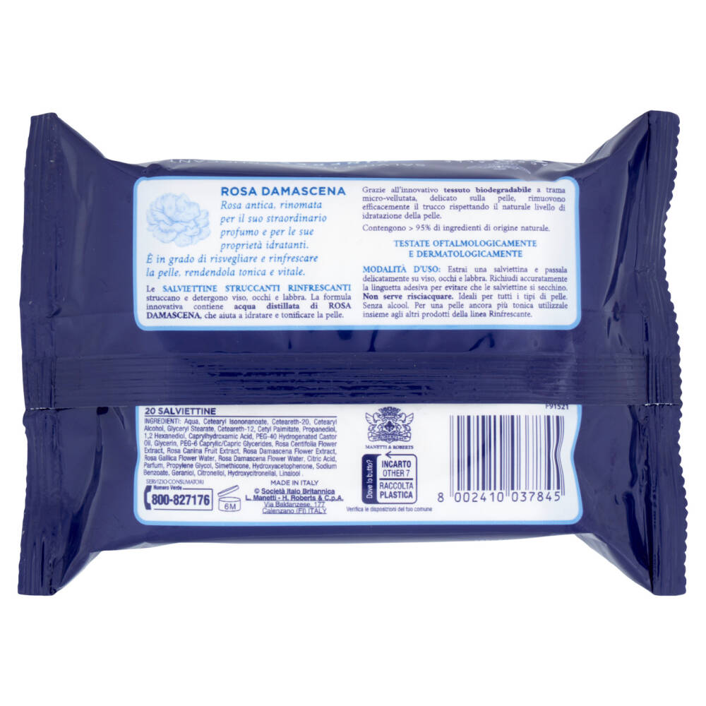 Le Salviettine Struccanti Rinfrescanti struccano e detergono viso, occhi e labbra. La formula innovativa contiene acqua distillata di Rosa Damascena, che aiuta a idratare e tonificare la pelle.