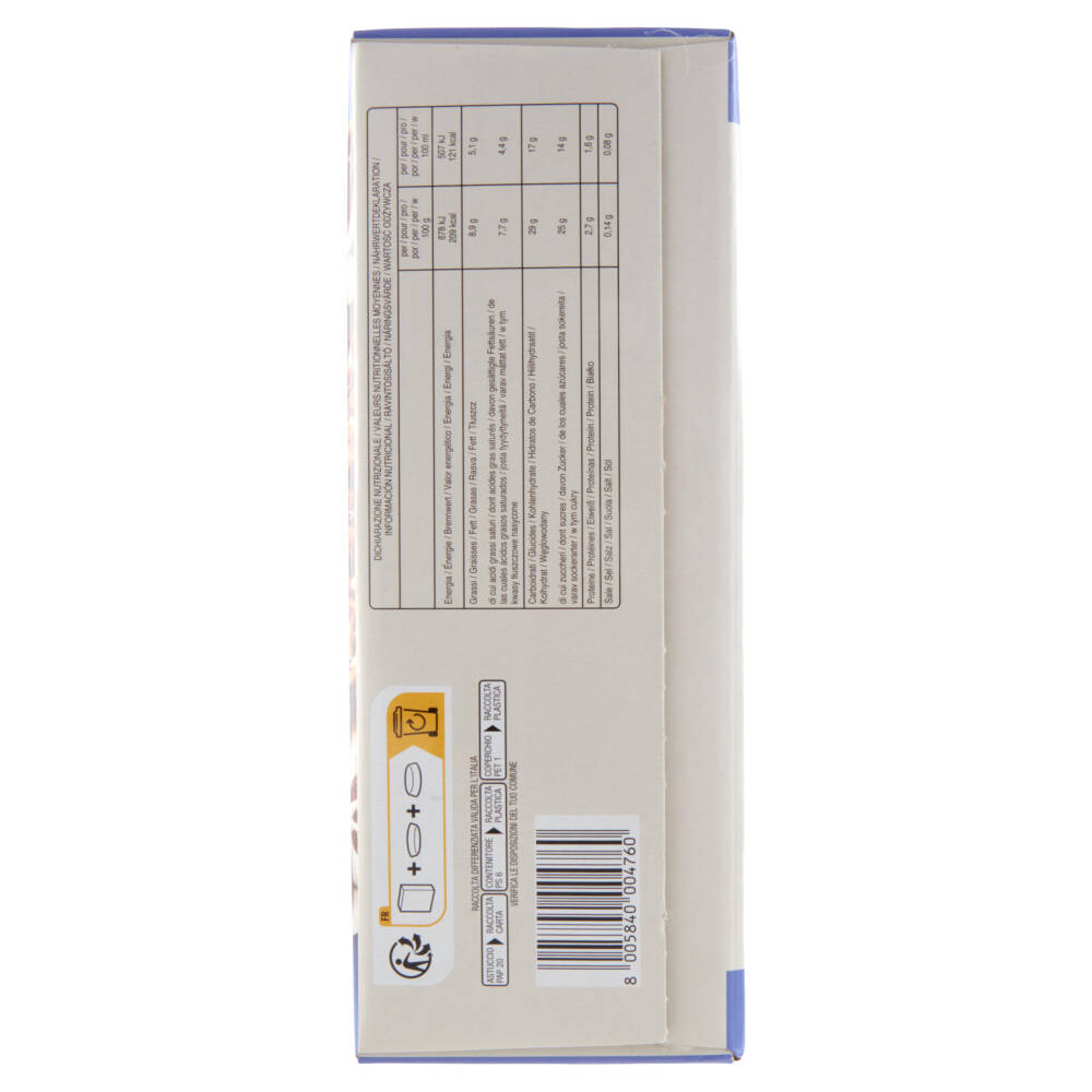 Contiene Mandorle, Potrebbe contenere Noci del Brasile, Potrebbe contenere Anacardi, Potrebbe contenere Uova, Potrebbe contenere Nocciole, Potrebbe contenere Noci Macadamia, Contiene Latte, Potrebbe contenere Senape, Potrebbe contenere Arachidi, Potrebbe contenere Noci pecan, Potrebbe contenere Pistacchi, Contiene Soia, Potrebbe contenere Noci, Contiene Grano/FrumentoAltro testo relativo ad allergeni