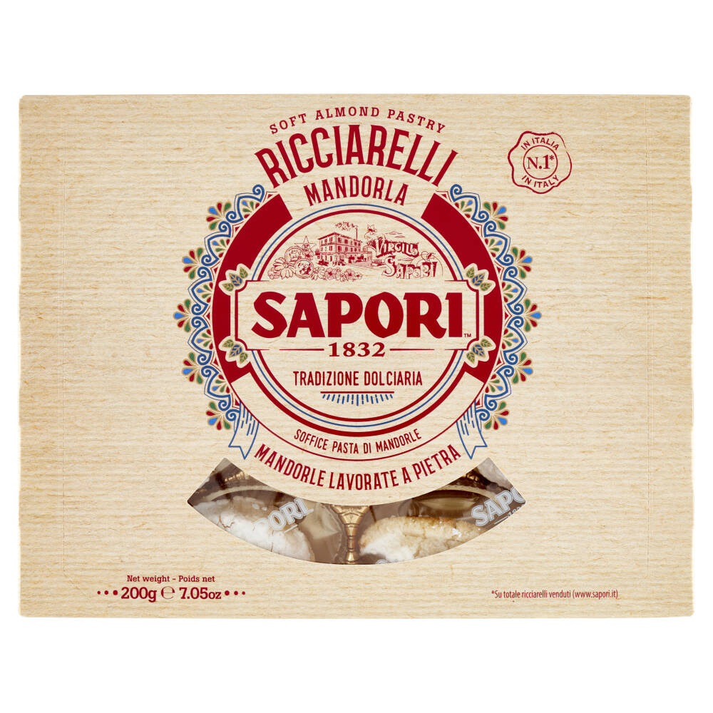 Ogni ricciarello Sapori racchiude tutta l'esperienza dei nostri mastri pasticceri: usiamo infatti solo mandorle intere, in un mix di dolci ed amare per esaltarne il gusto, ed ancora oggi le maciniamo lentamente a pietra per rendere la pasta soffice e delicata, pronta per essere ricoperta da un dolce velo di zucchero.
