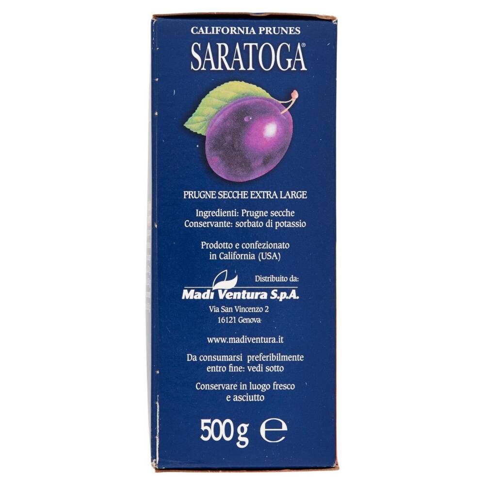 Le prugne Saratoga sono disponibili in diverse varietà e confezioni: Extralarge in scatola da 500 g, Denocciolate in scatola da 250 g e Denocciolate Senza Conservanti in lattina sottovuoto da 250 g.
