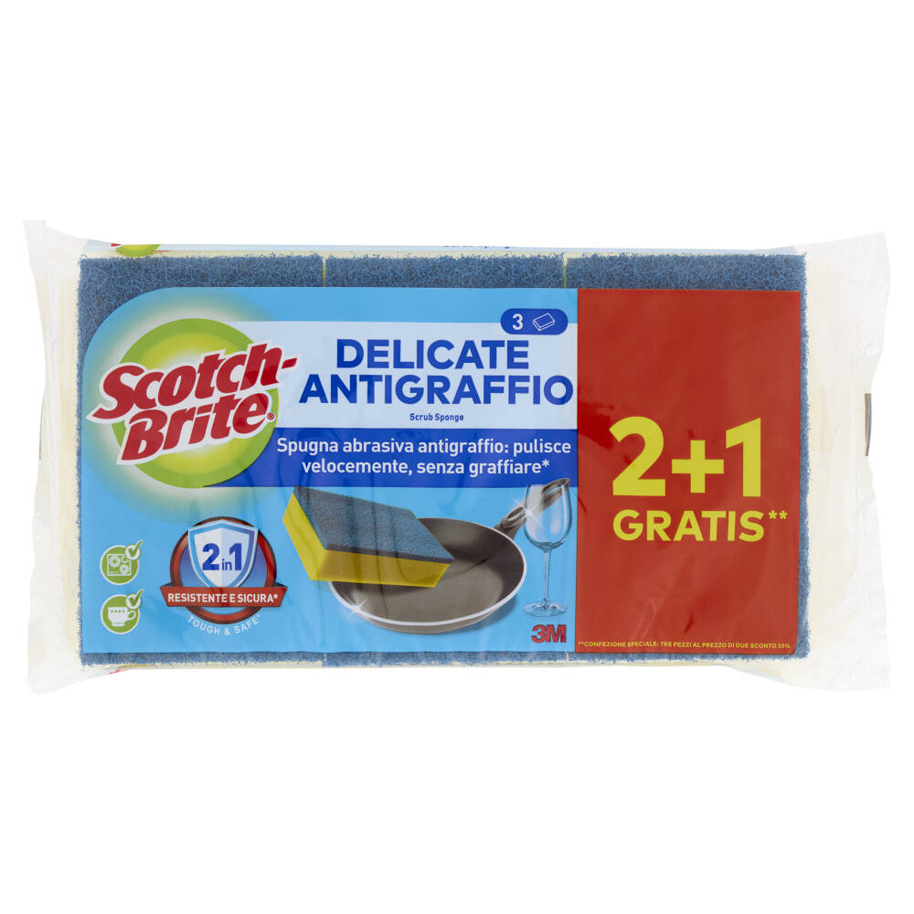 3 Spugne Spugna abrasiva antigraffio: pulisce velocemente, senza graffiare* 2 in 1 Resistente e sicura* *sulla base di test effettuati in laboratori interni su vetroceramica, vetro, superfici antiaderenti, piastrelle in ceramica e rubinetti cromati