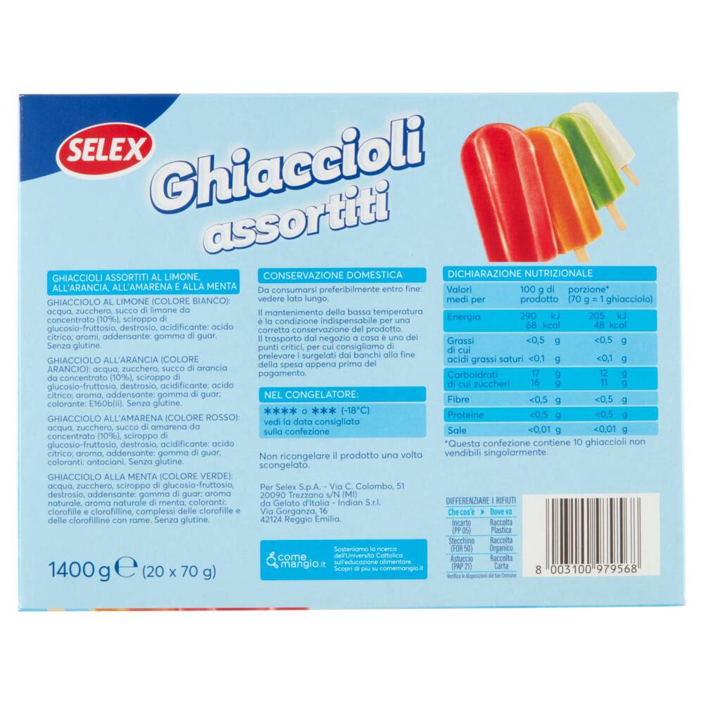 Ghiaccioli assortiti al limone, all'arancia, all'amarena e alla menta