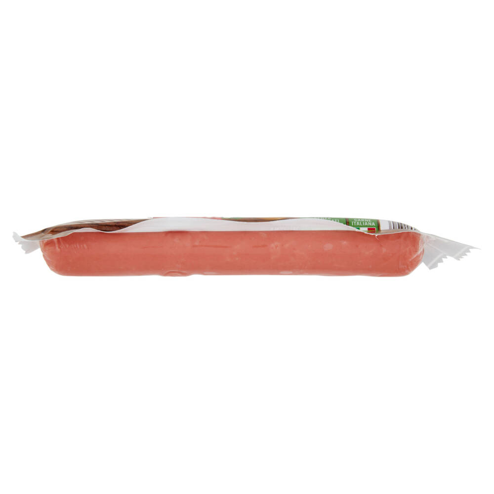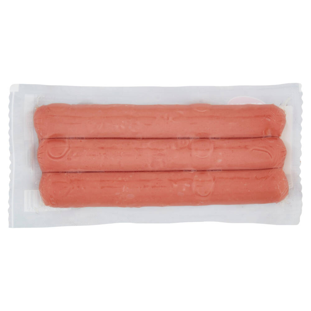Carne di pollo separata meccanicamente 49% Carne di tacchino separata meccanicamente 42% Acqua Sale Fecola di patate Destrosio Aromi Aromi naturali Aromi di affumicatura Fibre vegetali (patata, carota, bambù) Antiossidante: ascorbato di sodio Conservante: nitrito di sodio Senza glutine