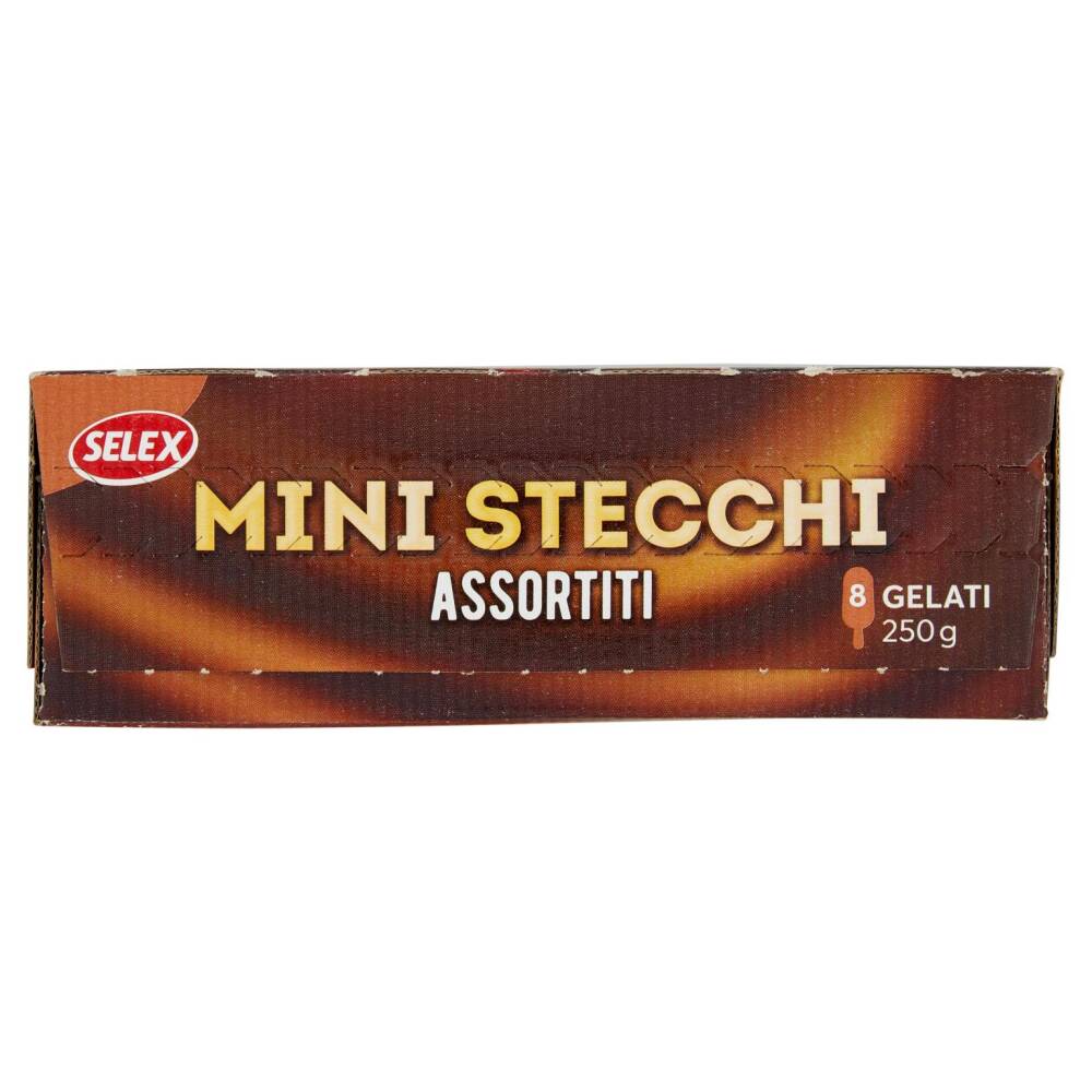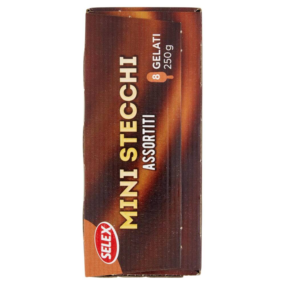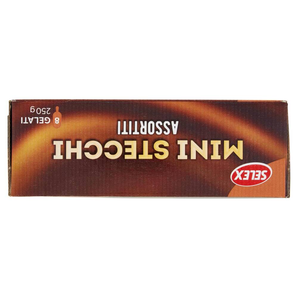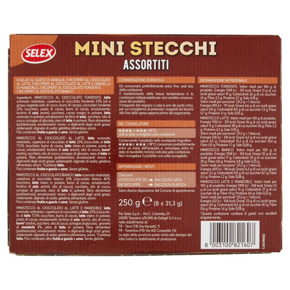 8 Gelati al gusto di vaniglia: 2 ricoperti al cioccolato al latte, 2 ricoperti al cioccolato al latte e granella di mandorle, 2 ricoperti al cioccolato fondente, 2 ricoperti al cioccolato bianco