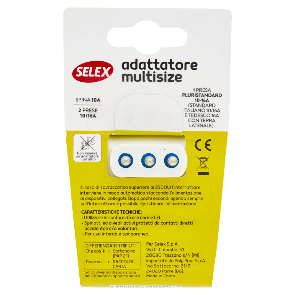 In caso di sovraccarico superiore ai 2300W l'interruttore interviene in modo automatico staccando l'alimentazione ai dispositivi collegati. Dopo pochi secondi agendo sempre sull'interruttore è possibile ripristinare l'alimentazione.