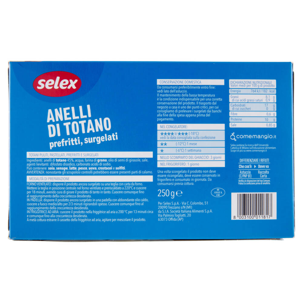 Anelli di totano 45% Acqua Farina di grano Olio di semi di girasole Sale Agenti lievitanti: difosfato disodico, carbonato acido di sodio Può contenere soia, senape, latte, pesce, uova, crostacei e solfiti
