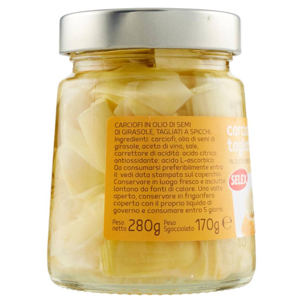 Carciofi in olio di semi di girasole, tagliati a spicchi