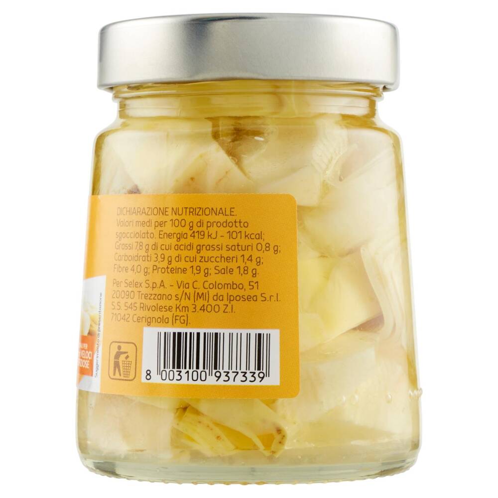 Carciofi Olio di semi di girasole Aceto di vino Sale Correttore di acidità: acido citrico Antiossidante: acido L- ascorbico