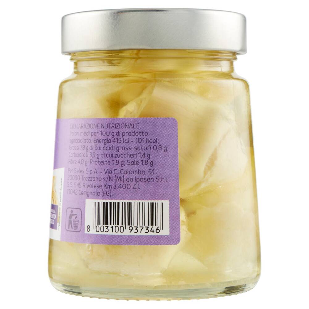 Carciofini Olio di semi di girasole Aceto di vino Sale Correttore di acidità: acido citrico Antiossidante: acido L- ascorbico
