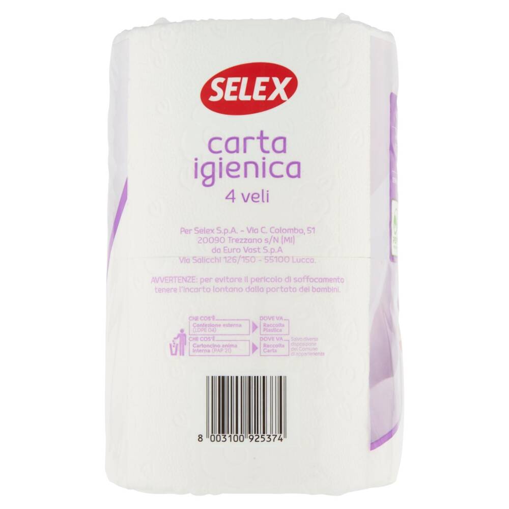 La Carta Igienica Selex è realizzata utilizzando esclusivamente pura cellulosa vergine. La particolare miscela di fibre le conferisce sofficità e resistenza.