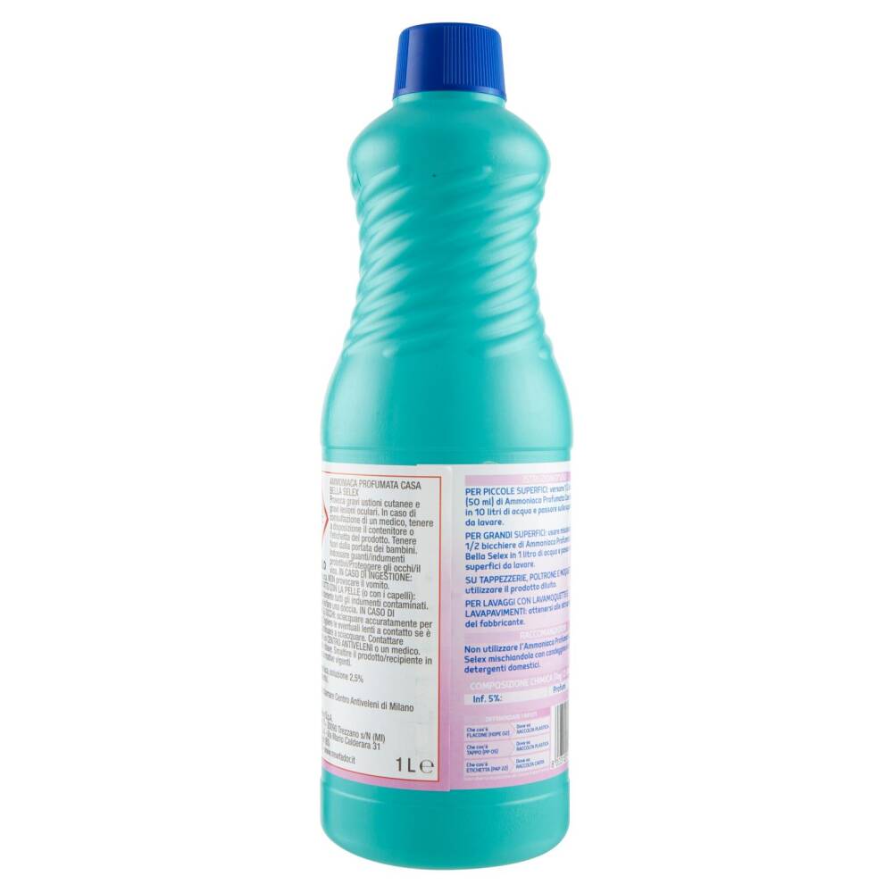 Per grandi superfici: usare miscelando 1/2 bicchiere di Ammoniaca Profumata Casa Bella Selex in 1 litro di acqua e passare sulle superfici da lavare.