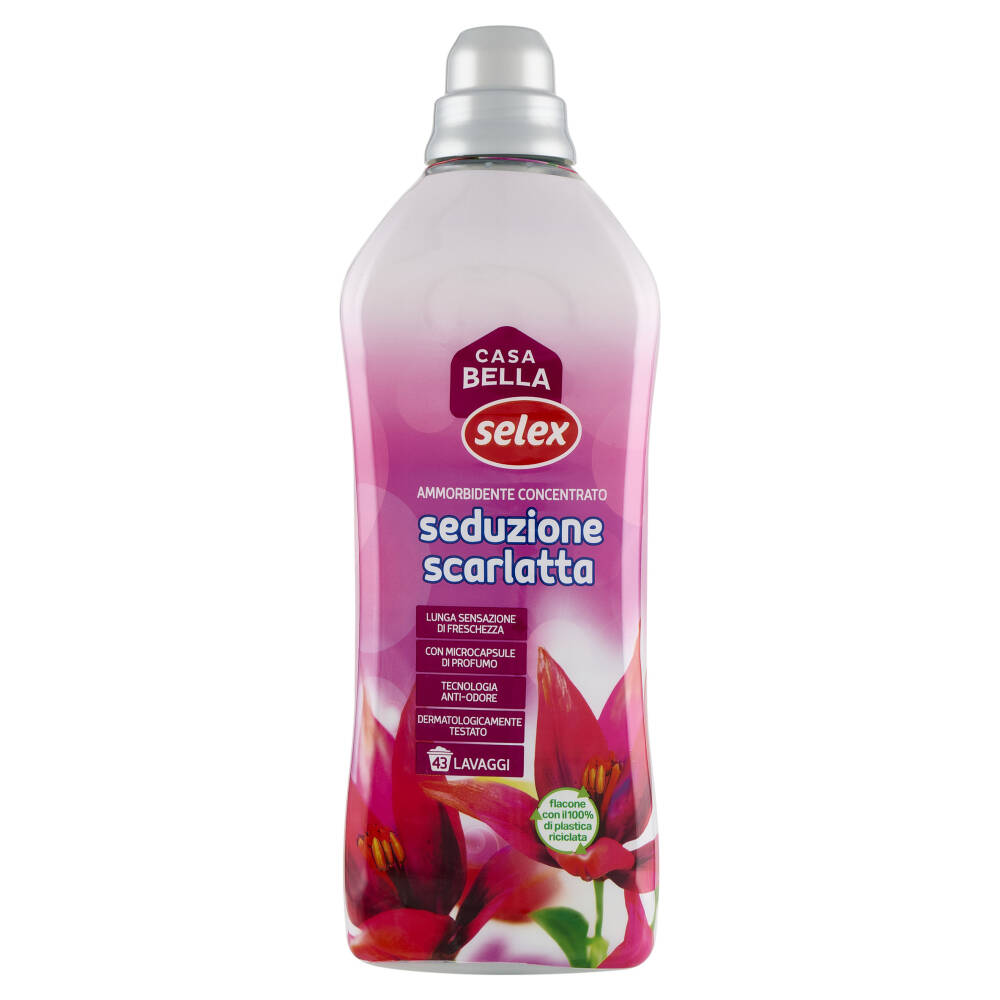 Il nuovo Ammorbidente Concentrato Seduzione Scarlatta Casa Bella Selex è stato arricchito con una nuova generazione di microcapsule di profumo che rilasciano la fragranza gradualmente così da poter avere un bucato sempre fresco e profumato ancora più a lungo.
