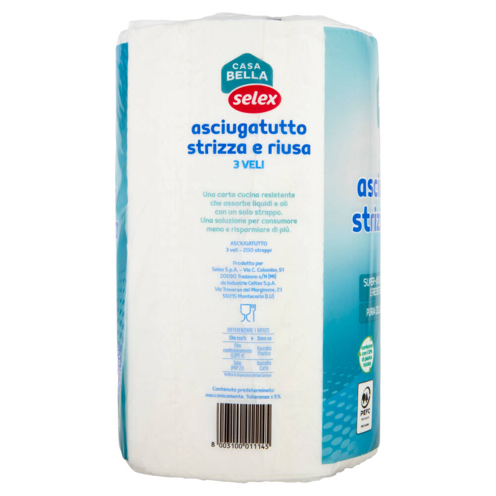 Selex Casa Bella Asciugatutto 3 Veli Strizza e Riusa Super Assorbente e Resistente 200 Strappi