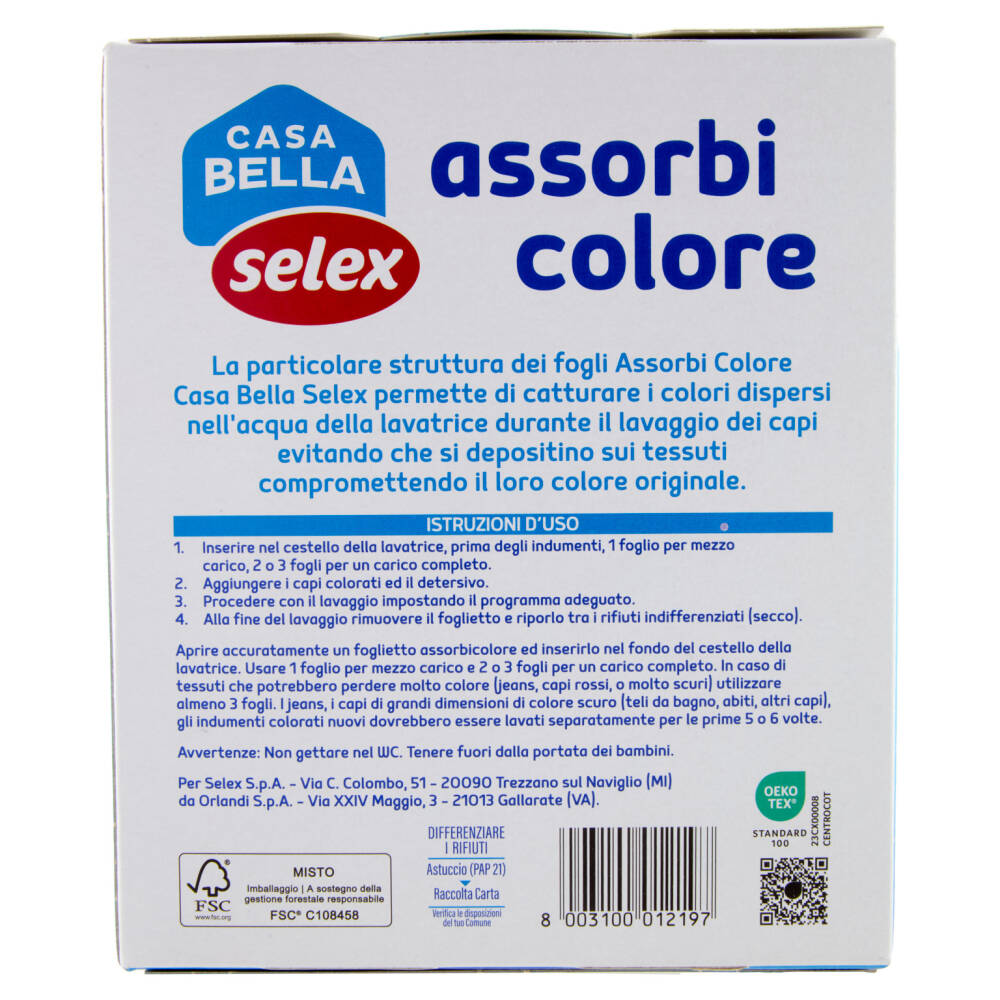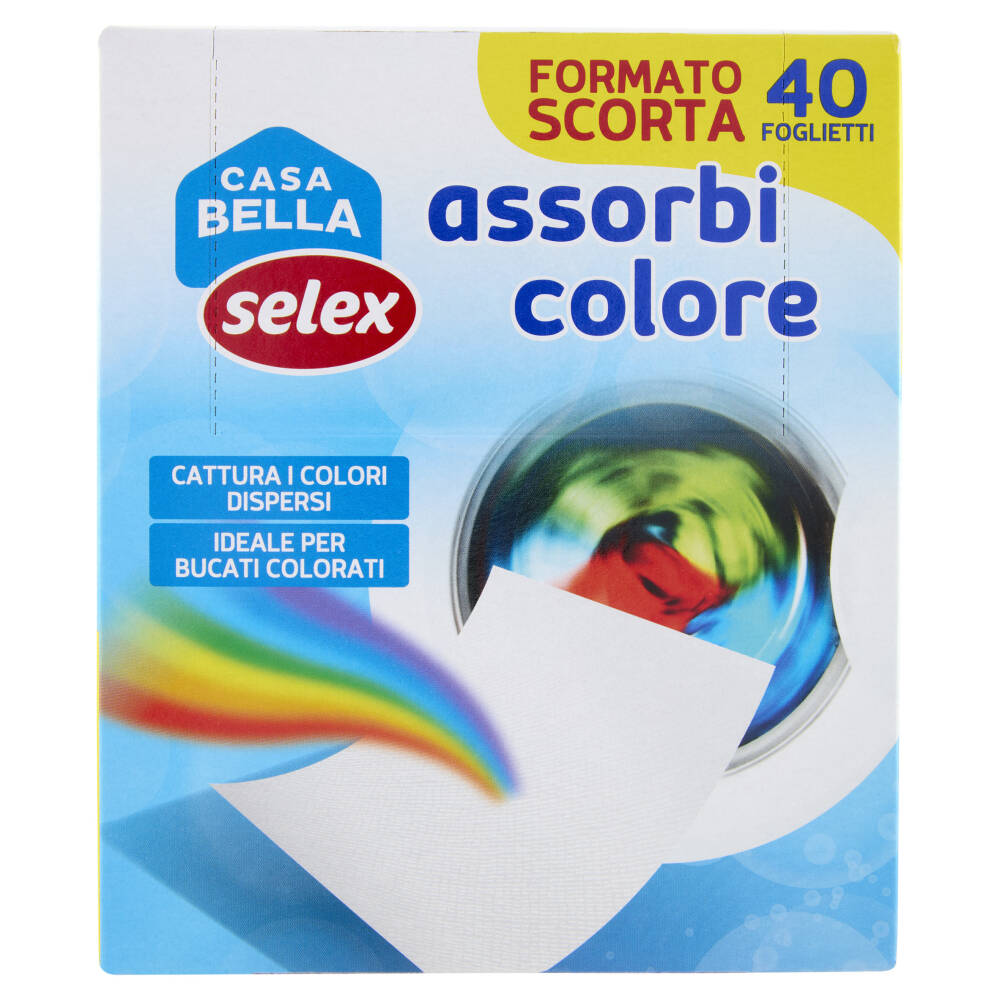 La particolare struttura dei fogli Assorbi Colore Casa Bella Selex permette di catturare i colori dispersi nell'acqua della lavatrice durante il lavaggio dei capi evitando che si depositino sui tessuti compromettendo il loro colore originale.