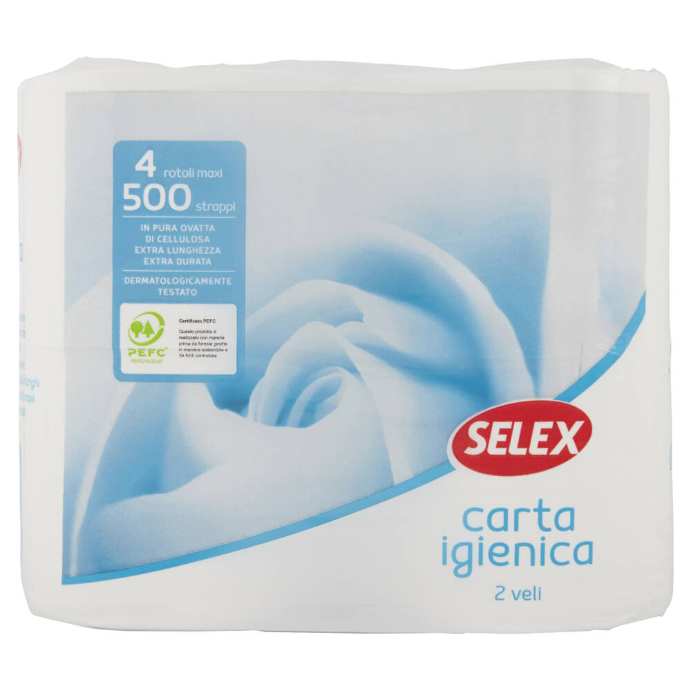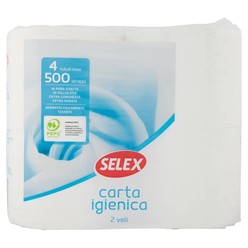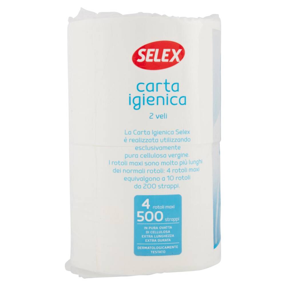 La Carta Igienica Selex è realizzata utilizzando esclusivamente pura cellulosa vergine. I rotoli maxi sono molto più lunghi dei normali rotoli: 4 rotoli maxi equivalgono a 10 rotali da 200 strappi.