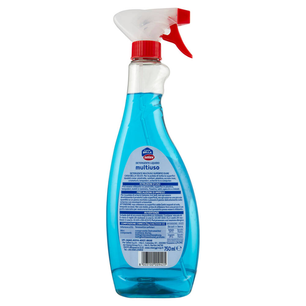 Detergente multiuso superfici dure Casa Bella Selex. Per la pulizia di tutte le superfici lavabili come: piastrelle, sanitari, plastica, acciaio inox, cromature, lampadari, schermi tv e computer.