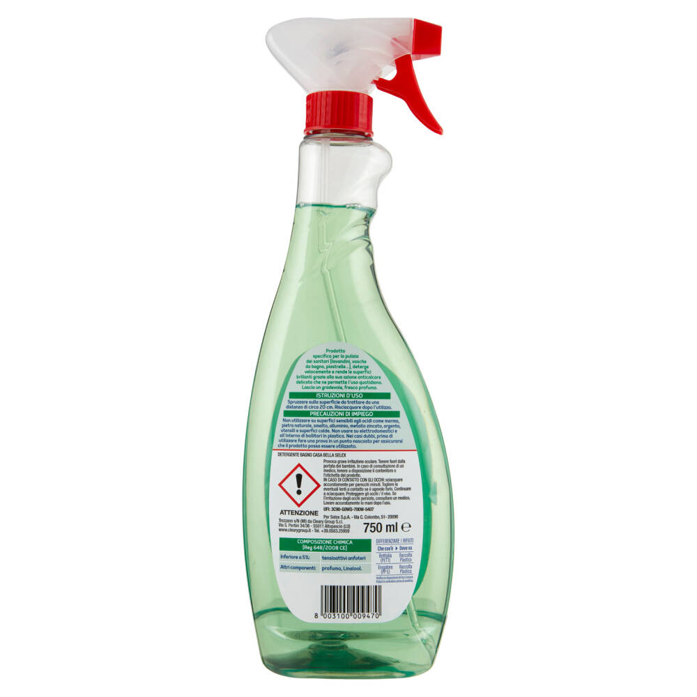 Prodotto specifico per la pulizia dei sanitari (lavandini, vasche da bagno, piastrelle.), deterge velocemente e rende le superfici brillanti grazie alla sua azione anticalcare delicata che ne permette l'uso quotidiano. Lascia un gradevole, fresco profumo.