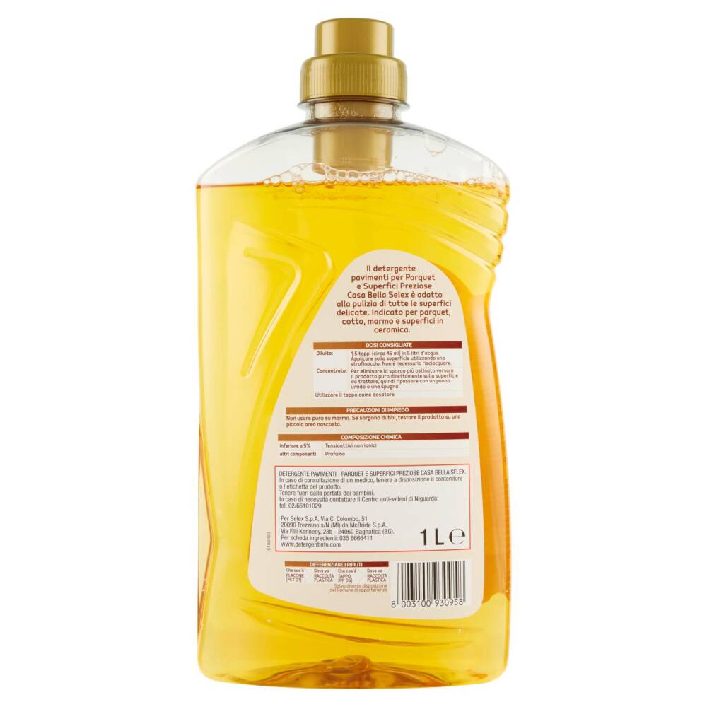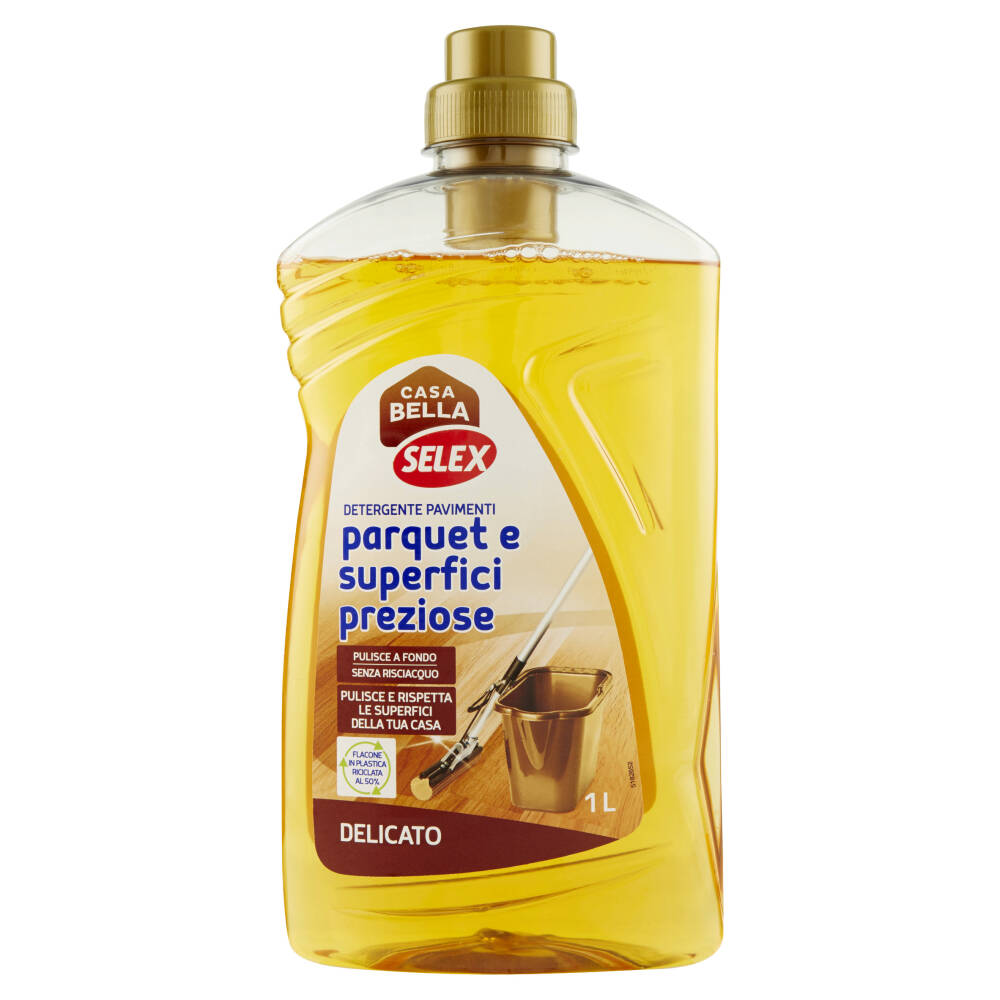 Il detergente pavimenti per Parquet e Superfici Preziose Casa Bella Selex è adatto alla pulizia di tutte le superfici delicate. Indicato per parquet, cotto, marmo e superfici in ceramica.