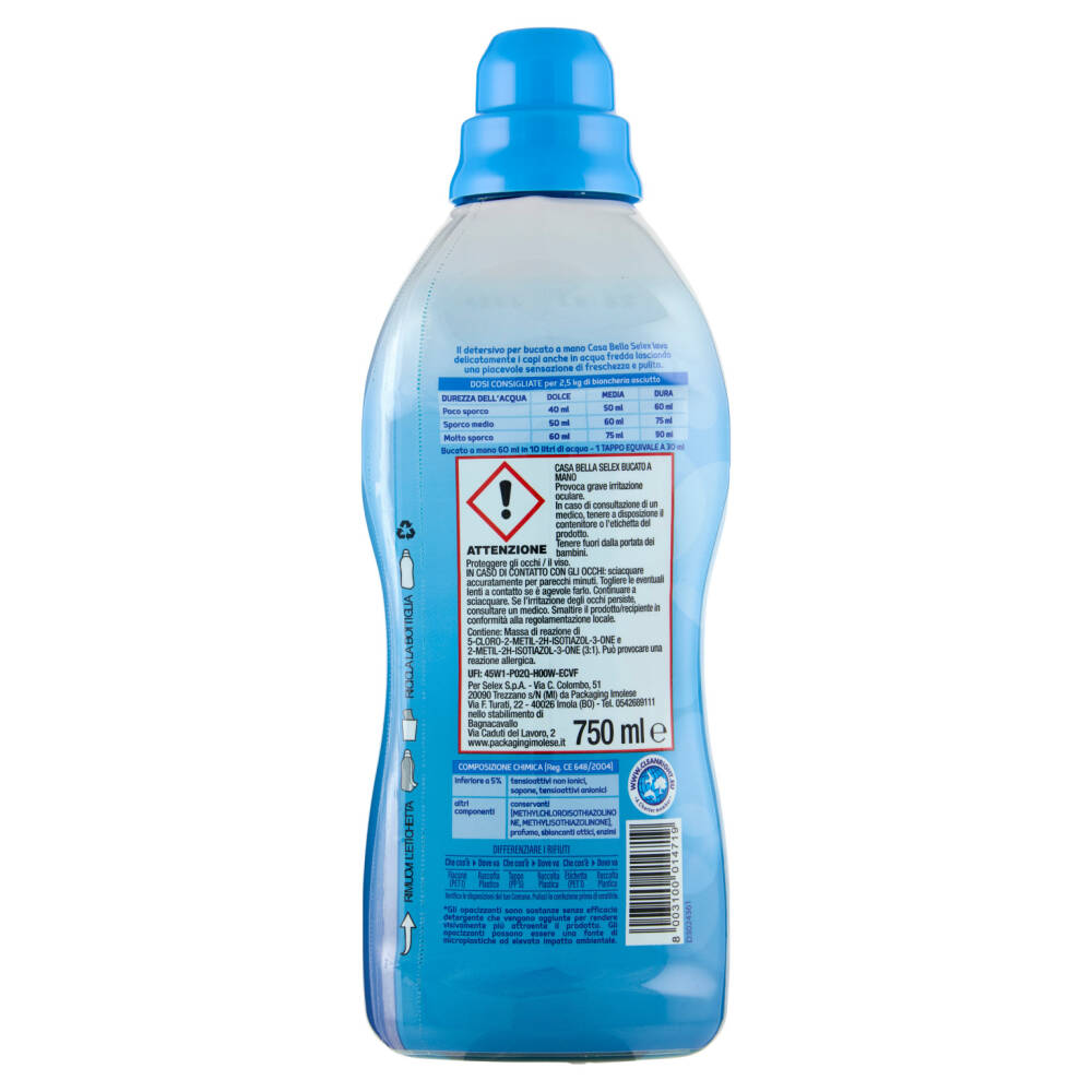 Il detersivo per bucato a mano Casa Bella Selex lava delicatamente i capi anche in acqua fredda lasciando una piacevole sensazione di freschezza e pulito.