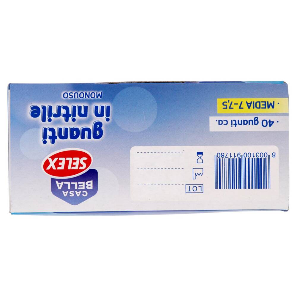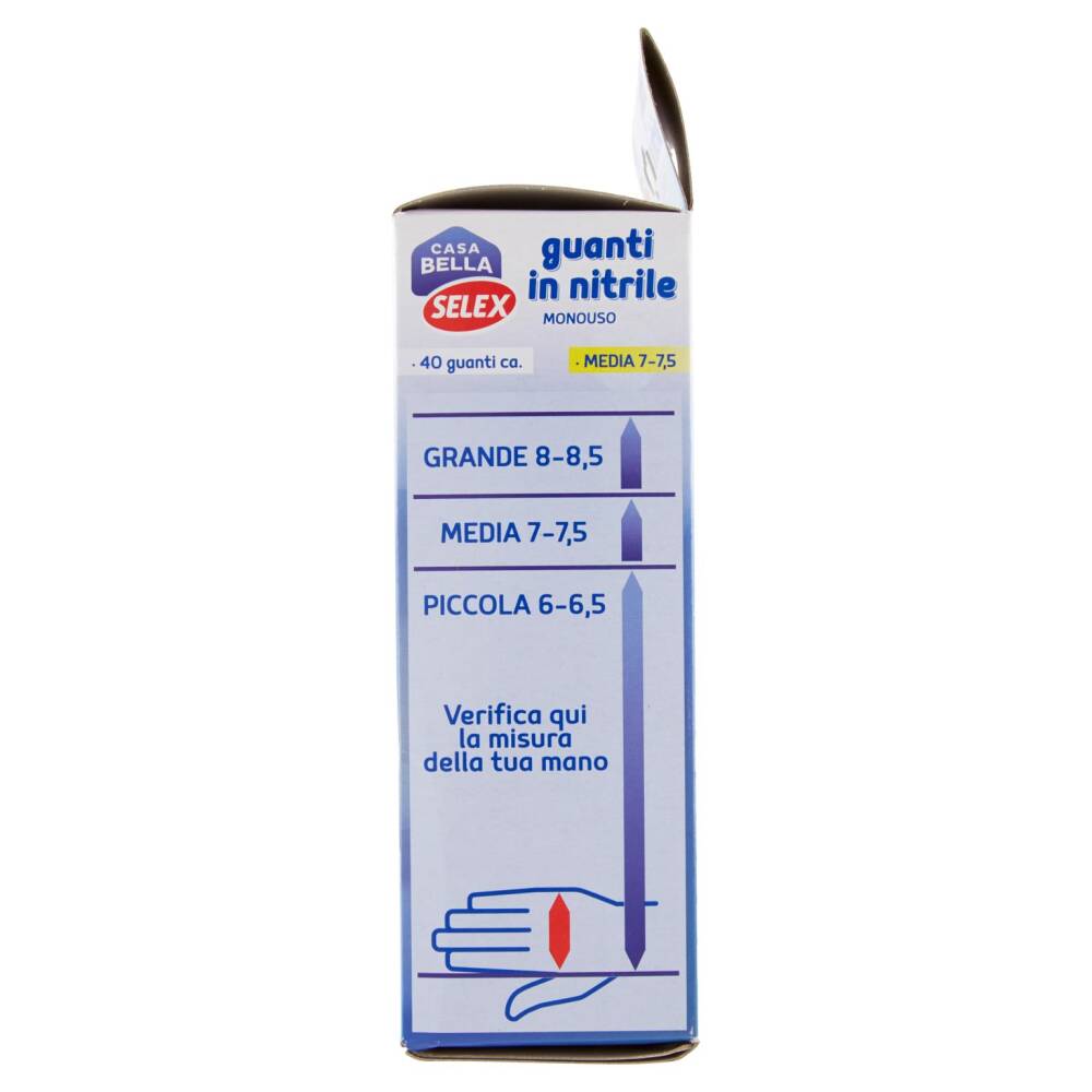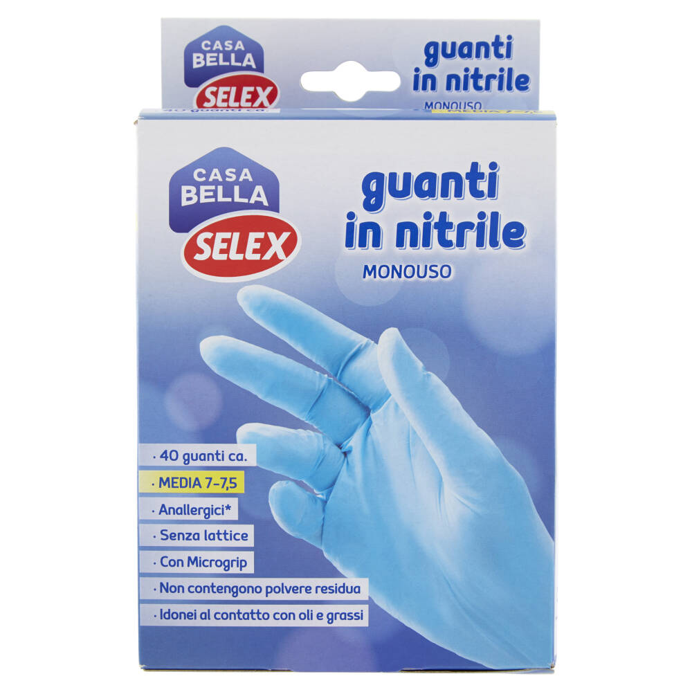 - 40 Guanti ca. - Media 7-7,5 - Anallergici* - Senza lattice - Con Microgrip - Non contengono polvere residua - Idonei al contatto con oli e grassi *Anallergici: non inducono fenomeni allergici in soggetti sensibili alle proteine del lattice